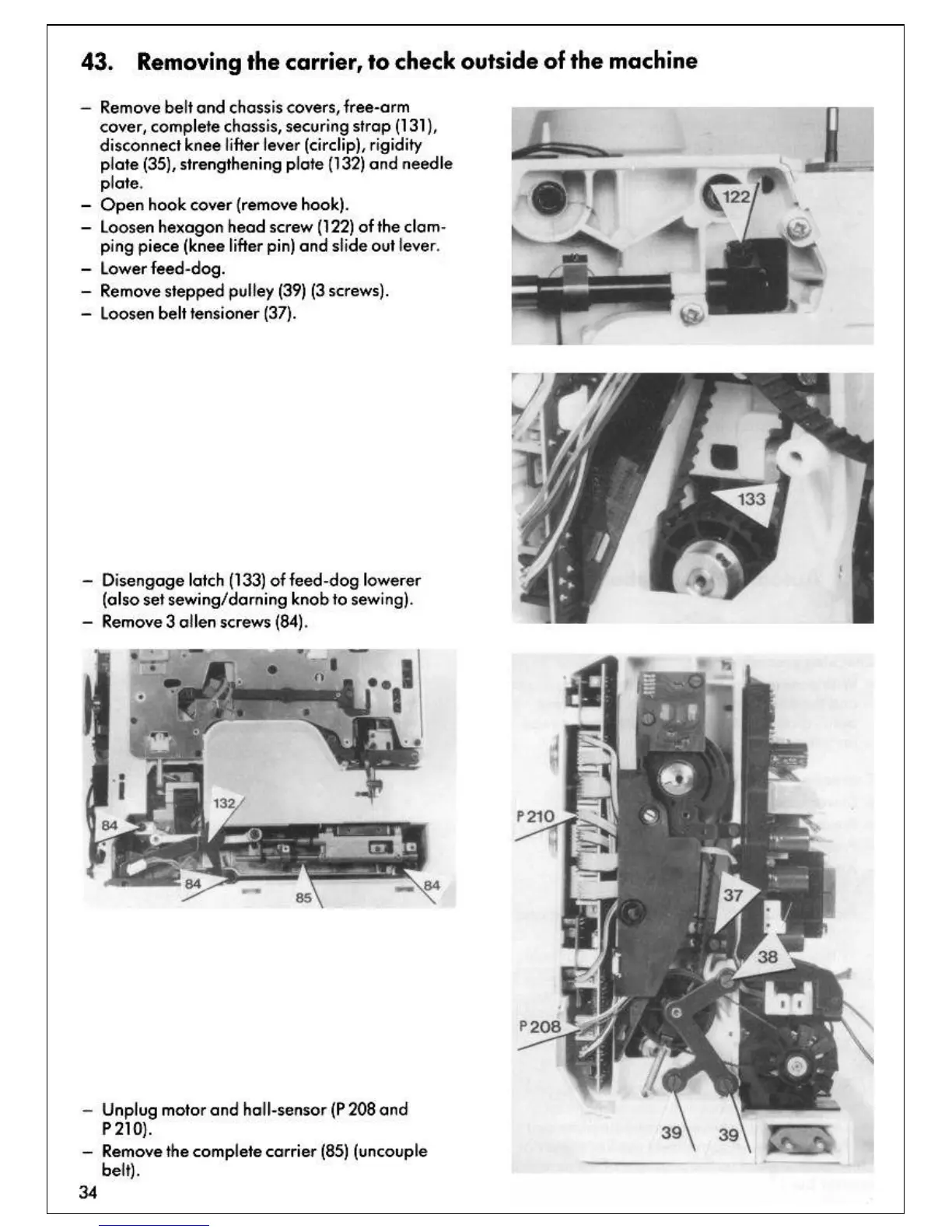 Bernina 1130 - Removing the Carrier, to Check Outside of the Machine