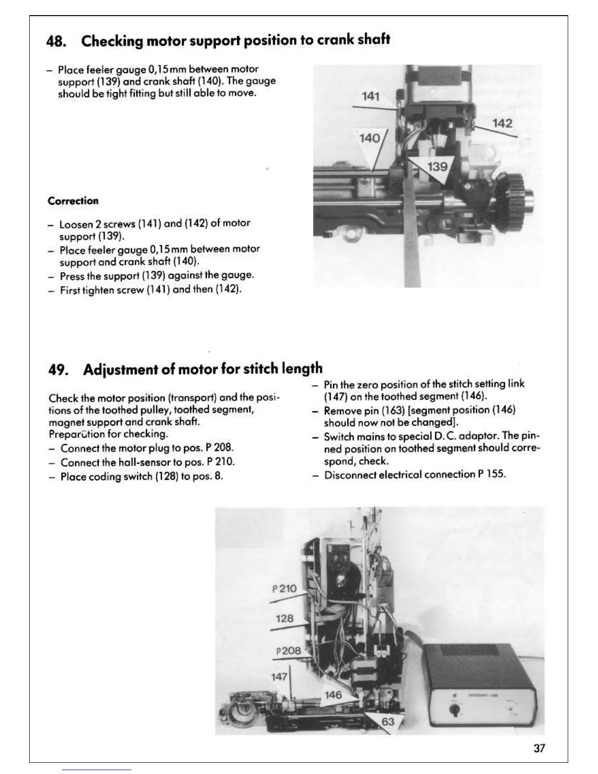 Bernina 1130 - Motor Adjustment for Stitch Length; Motor Position Check for Stitch Length