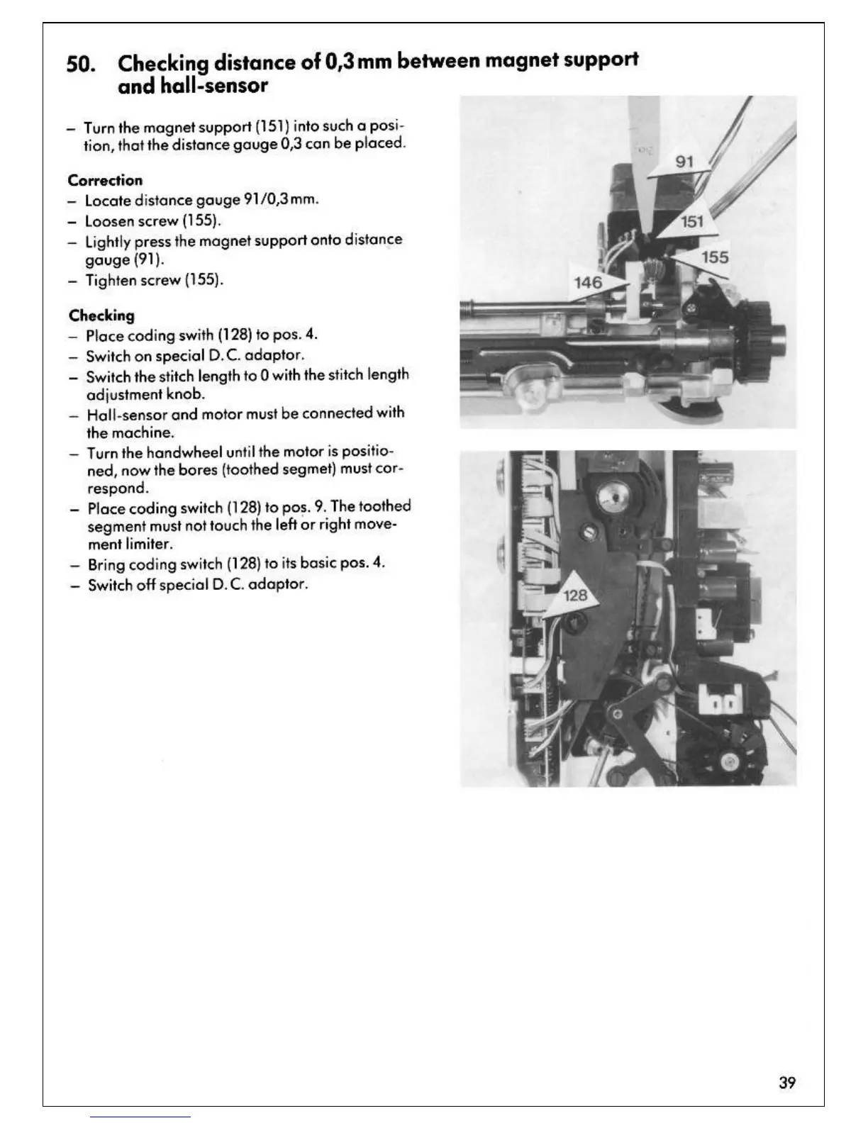 Bernina 1130 - Magnet Support and Hall-Sensor Distance Check; Magnet Support Distance Correction