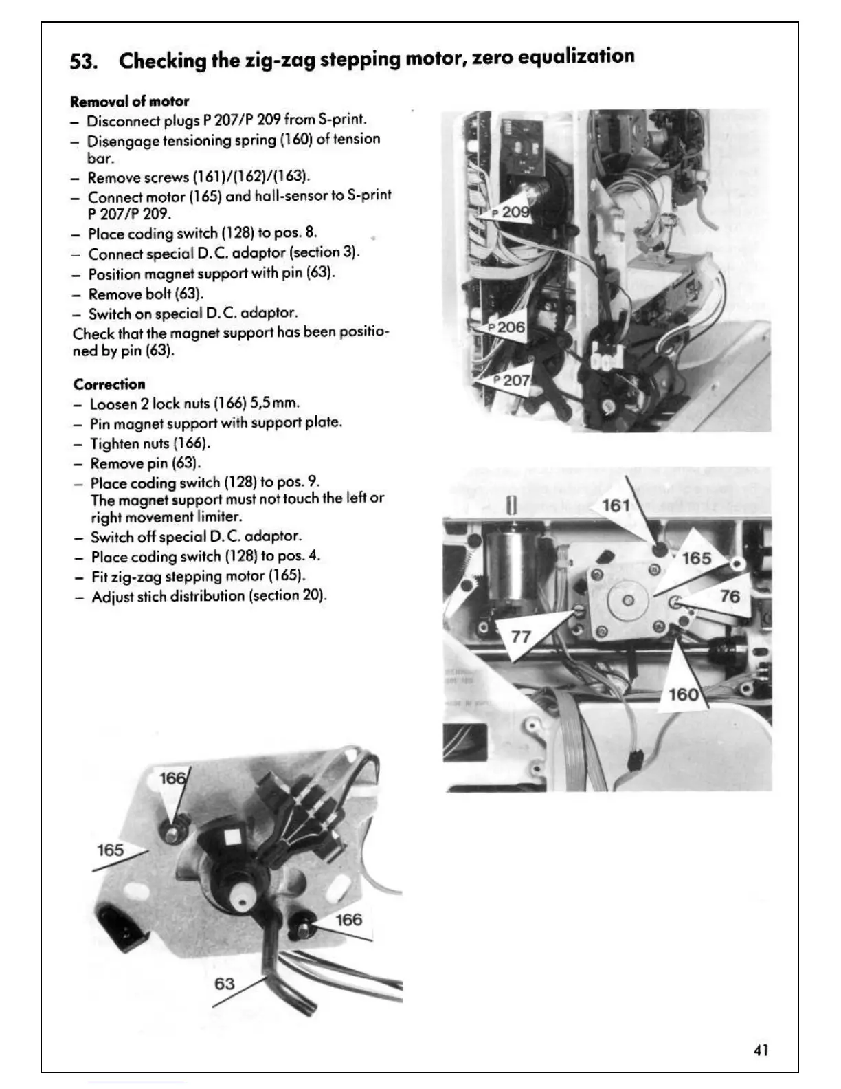 Bernina 1130 - Zig-Zag Stepping Motor Zero Equalization; Zig-Zag Motor Equalization Correction