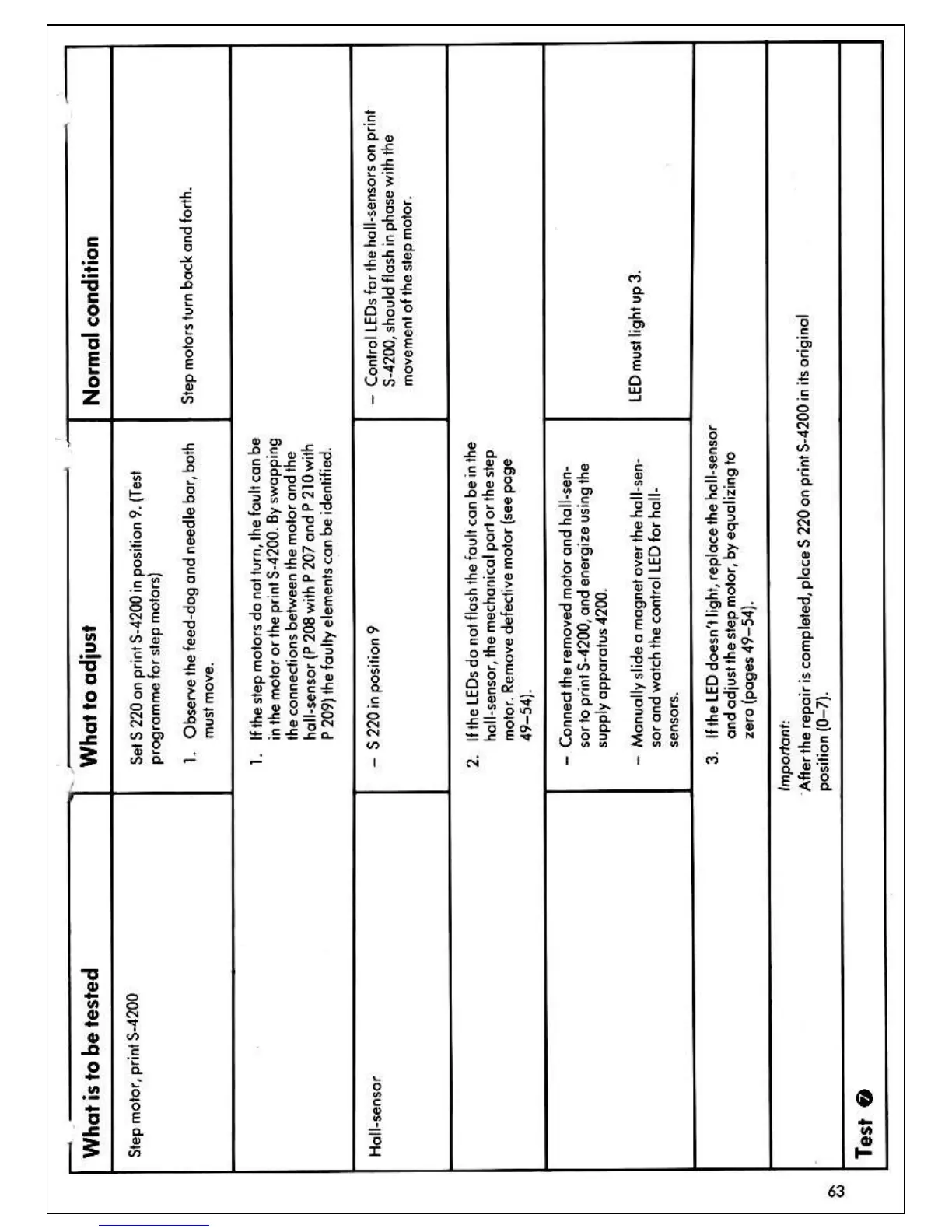 Bernina 1130 - Testing Step Motor and S-4200 Print; Testing the Hall-Sensor