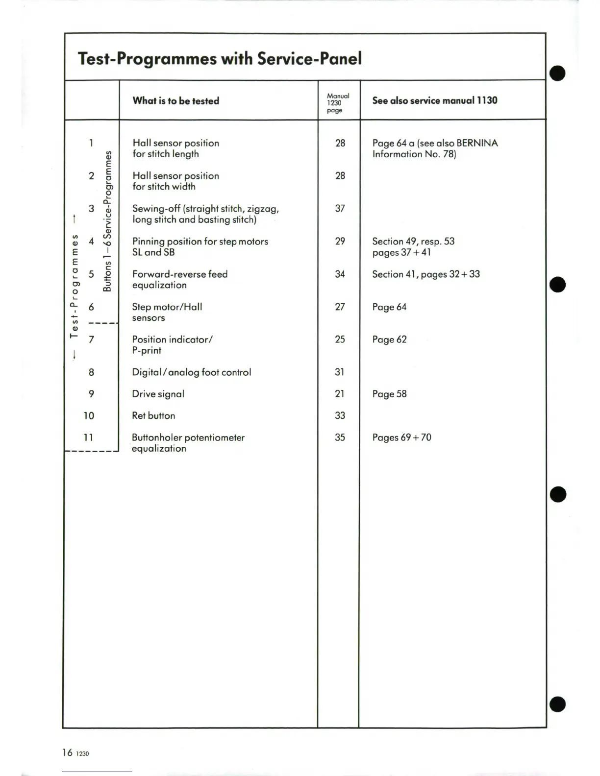 Bernina 1230 - Service Test Programmes Overview