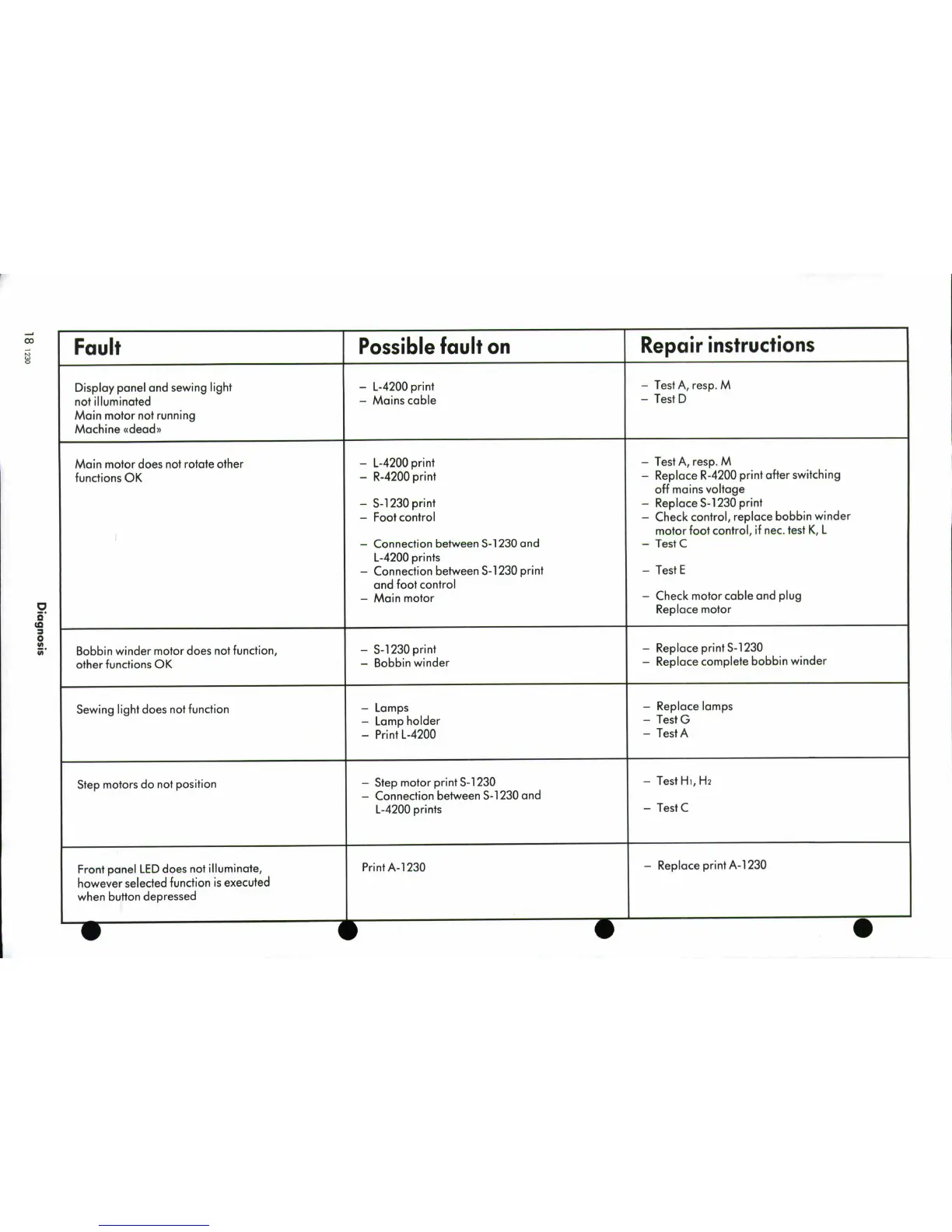 Bernina 1230 - Diagnosis Table