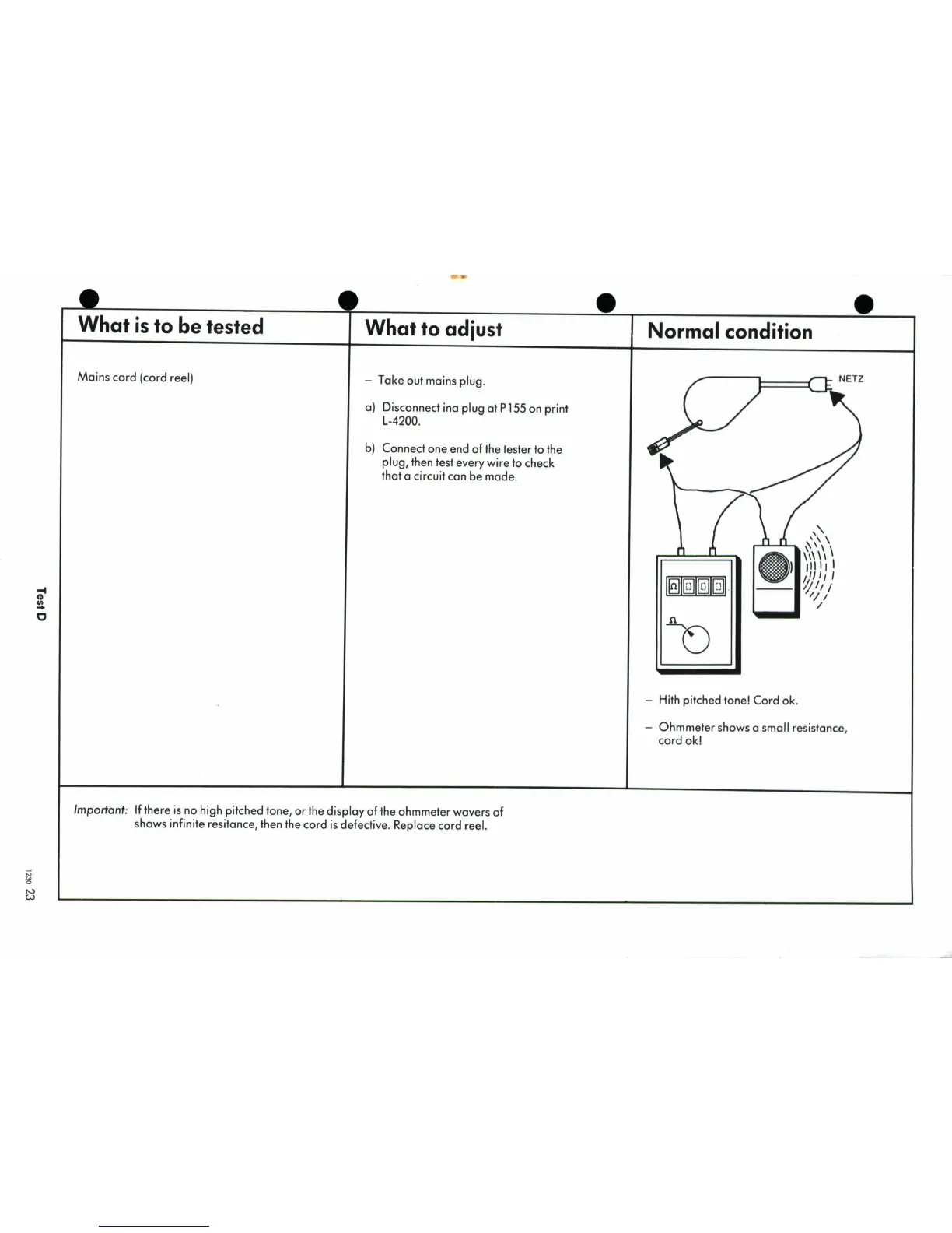 Bernina 1230 - Test D; Mains Cord (Cord Reel) Integrity