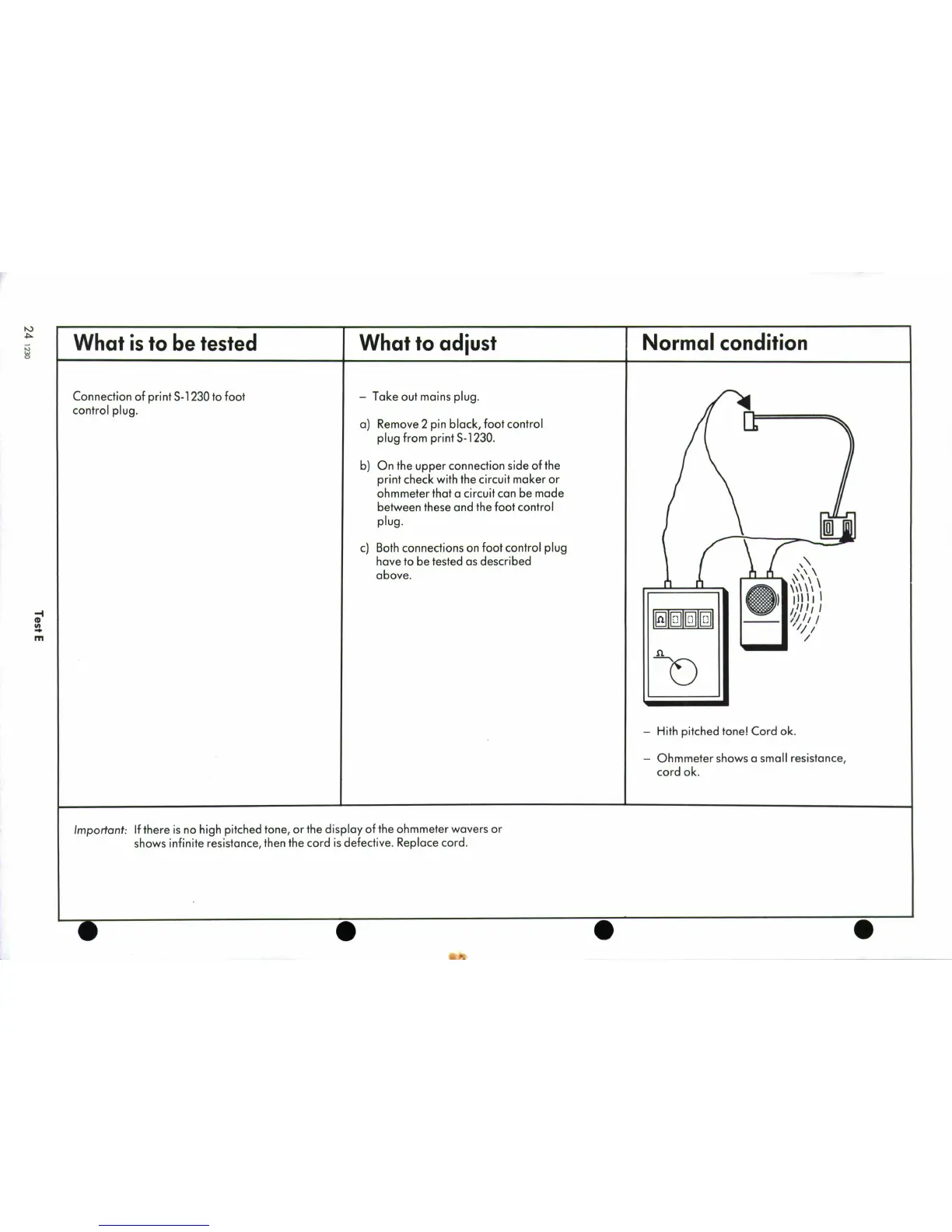 Bernina 1230 - Test E; S-1230 to Foot Control Connection