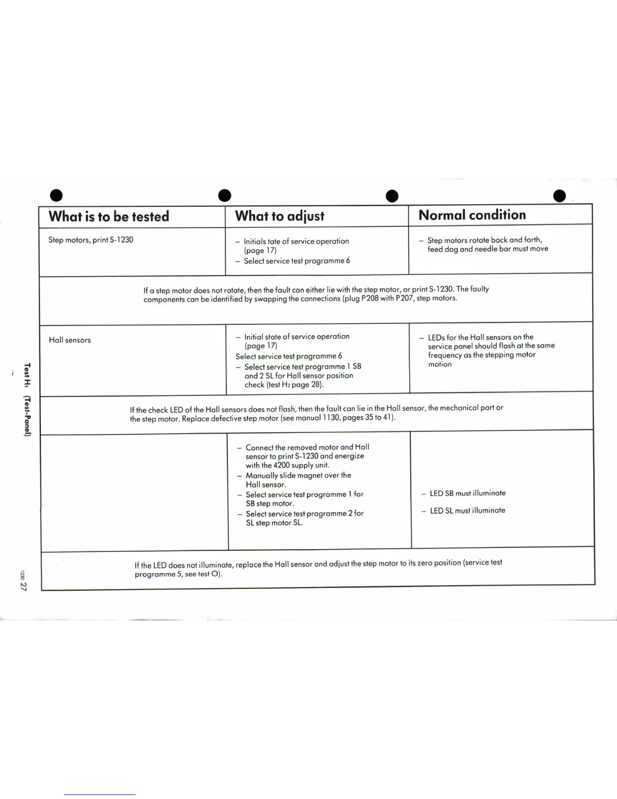 Bernina 1230 - Test H1; Step Motors, Print S-1230 Functionality; Test H2; Hall Sensors