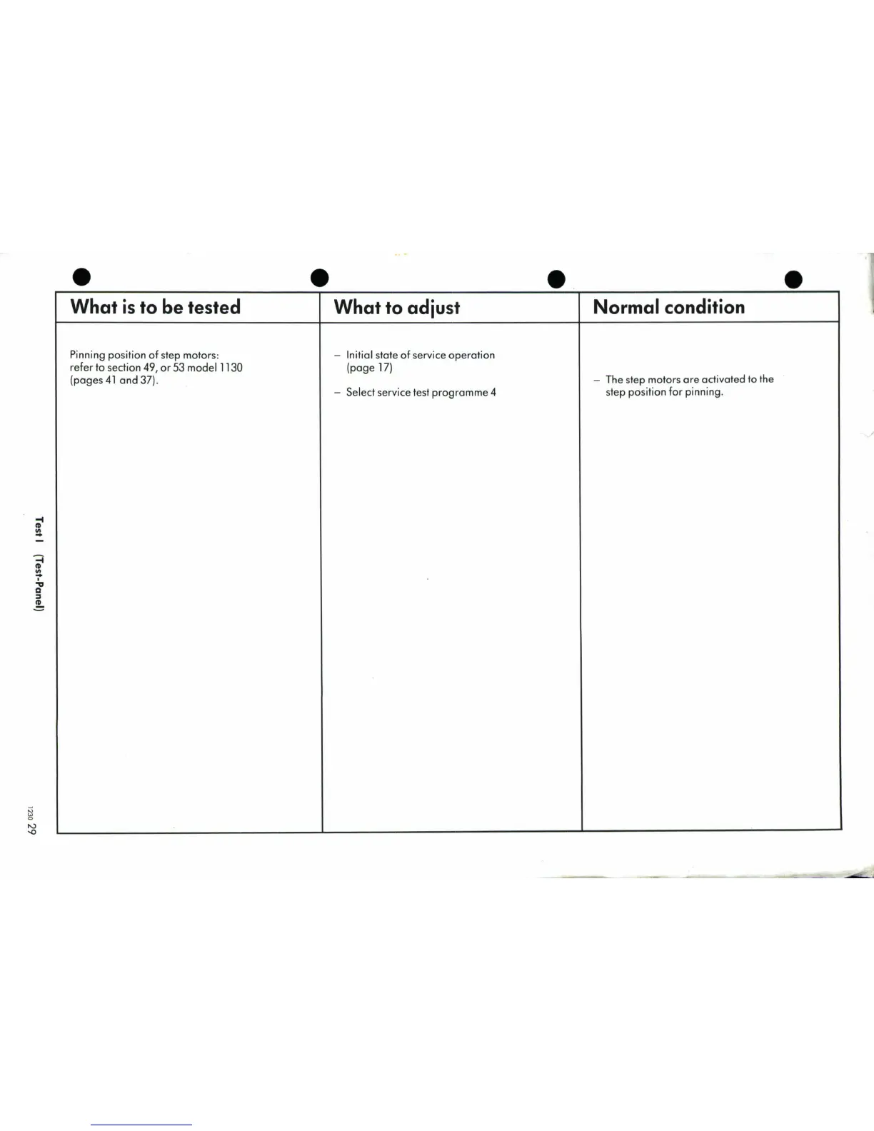Bernina 1230 - Test I; Pinning Position of Step Motors