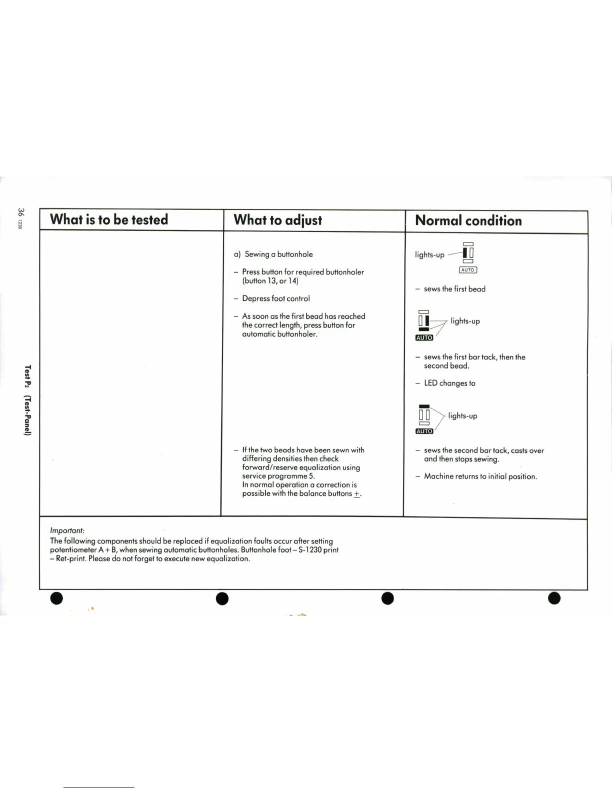 Bernina 1230 - Test P2; Sewing a Buttonhole Procedure