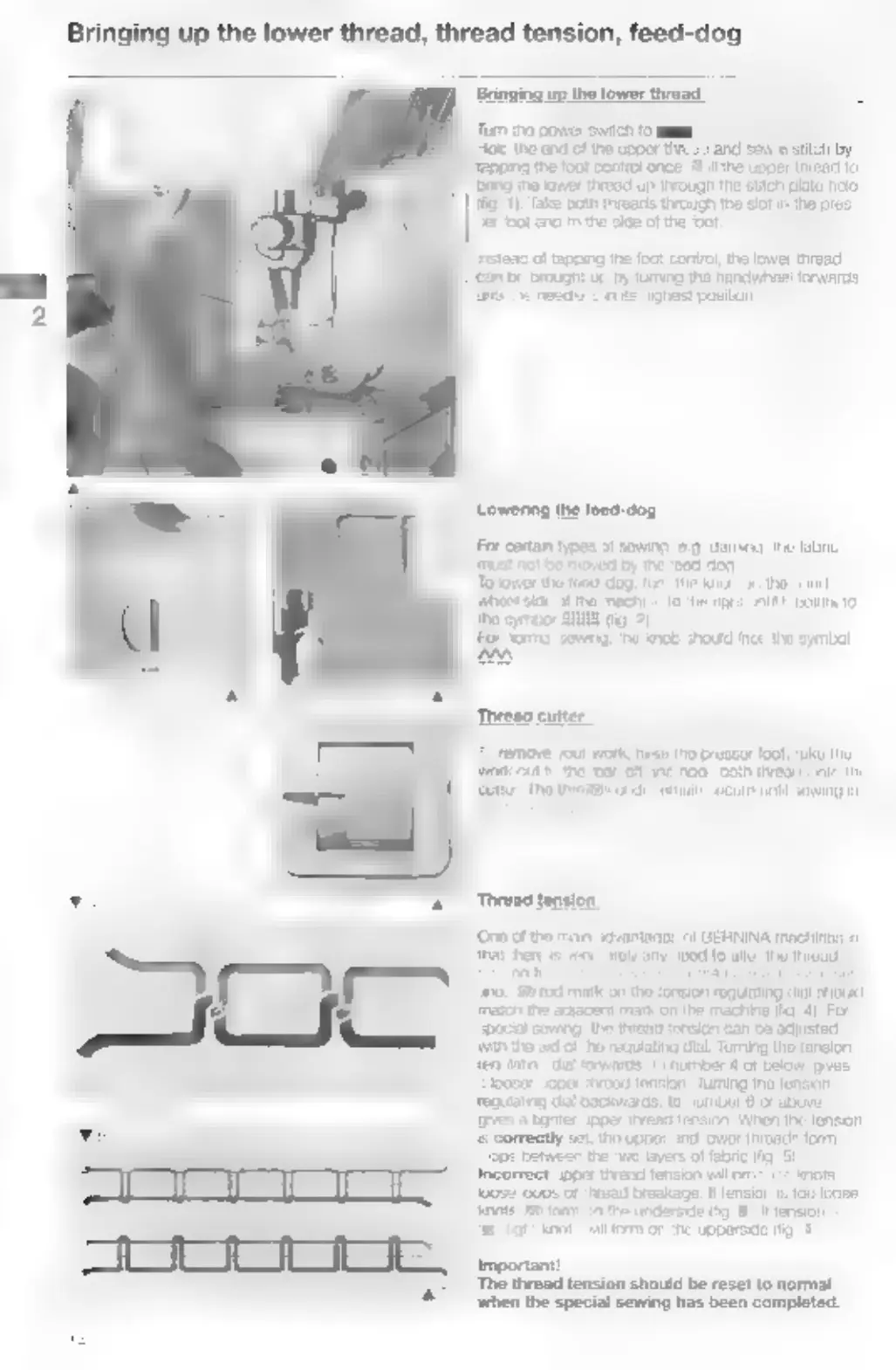 Bernina 1260 - Thread Management and Tension; Bringing Up Lower Thread; Feed-Dog Adjustment; Thread Tension Adjustment