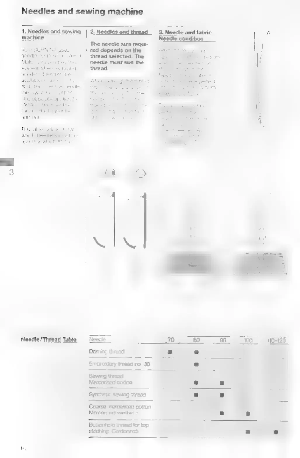 Bernina 1260 - Needle Selection and Compatibility; Needle Types and Usage; Needle;Thread Compatibility Table