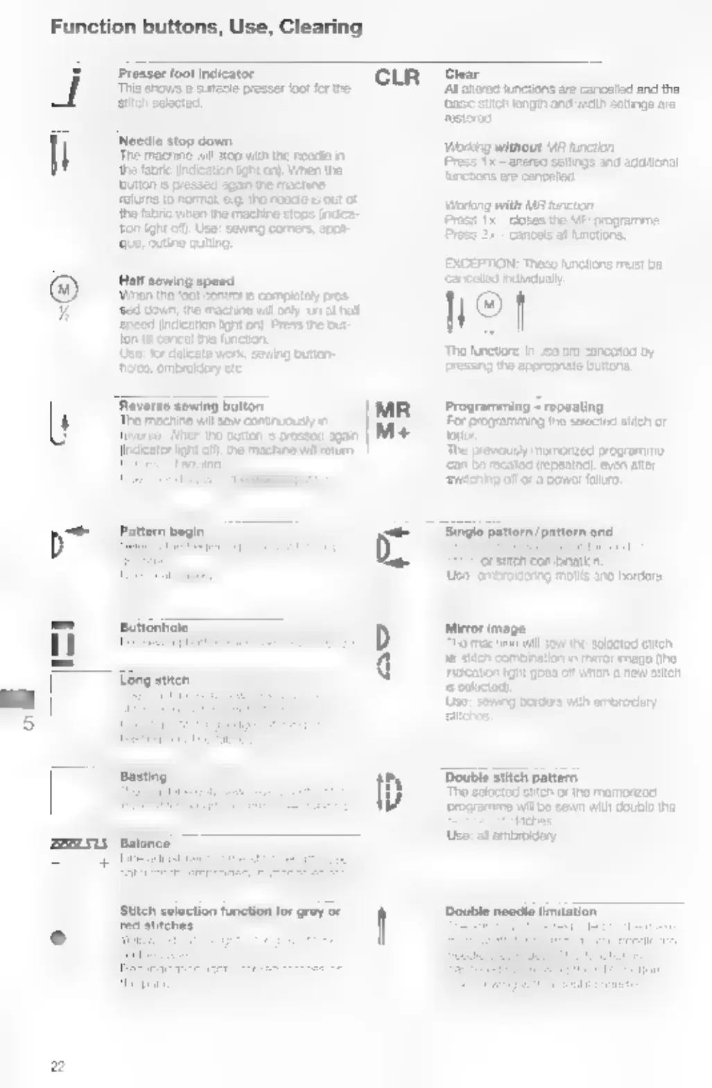 Bernina 1260 - Sewing Machine Function Buttons; Key Operation Buttons; Stitch and Program Management; Advanced Stitch Functions