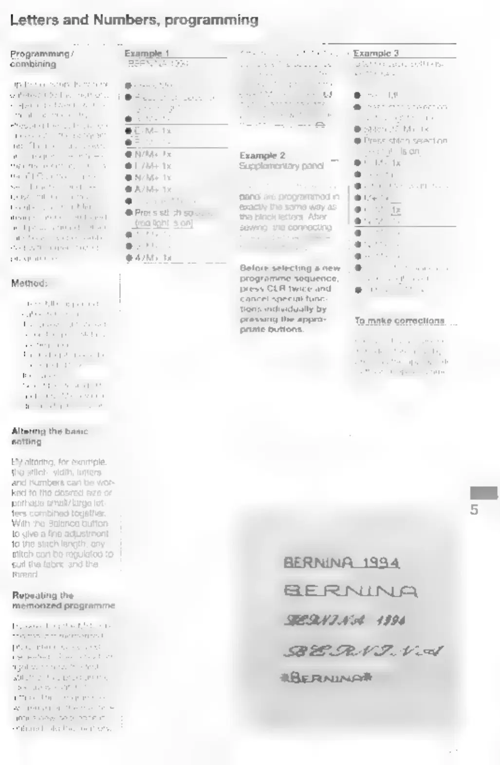 Bernina 1260 - Programming Letters and Numbers; Combining Letter and Number Stitches; Adjusting Letter;Number Settings