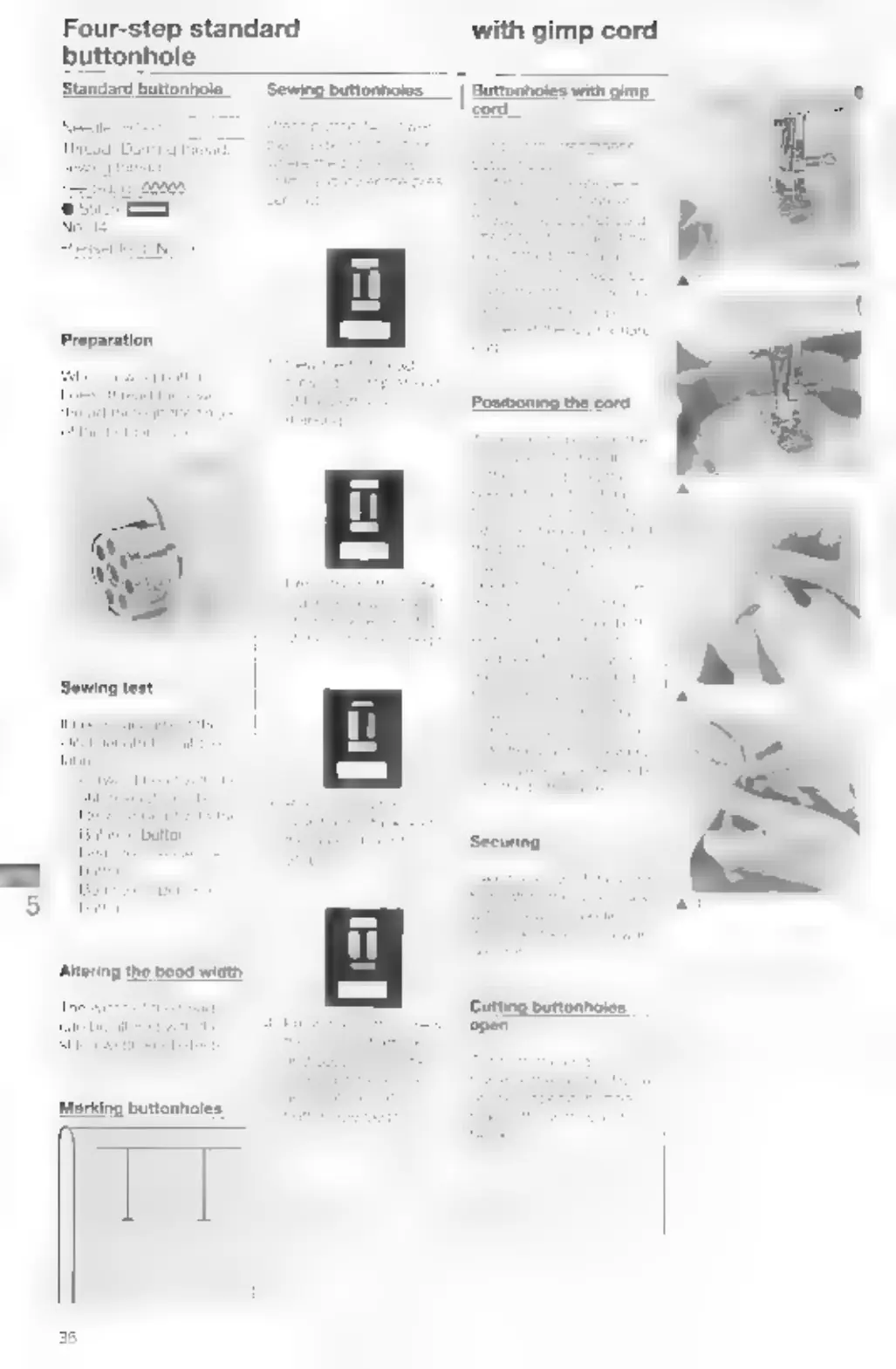 Bernina 1260 - Standard Buttonholes; Four-Step Buttonhole Creation; Buttonholes with Gimp Cord