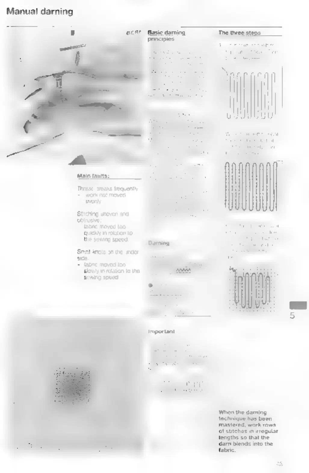 Bernina 1260 - Manual Darning Techniques; Common Darning Faults; Darning Principles and Steps