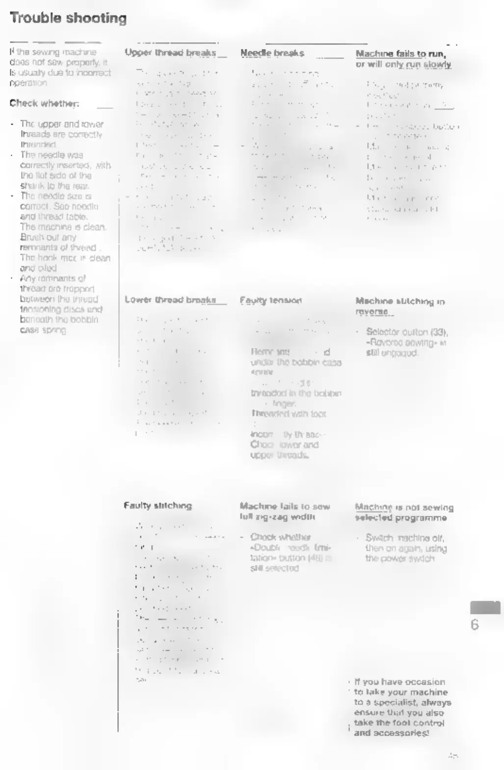 Bernina 1260 - Troubleshooting Common Issues; Thread and Needle Problems; Machine Operation Failures; Stitching Quality Problems