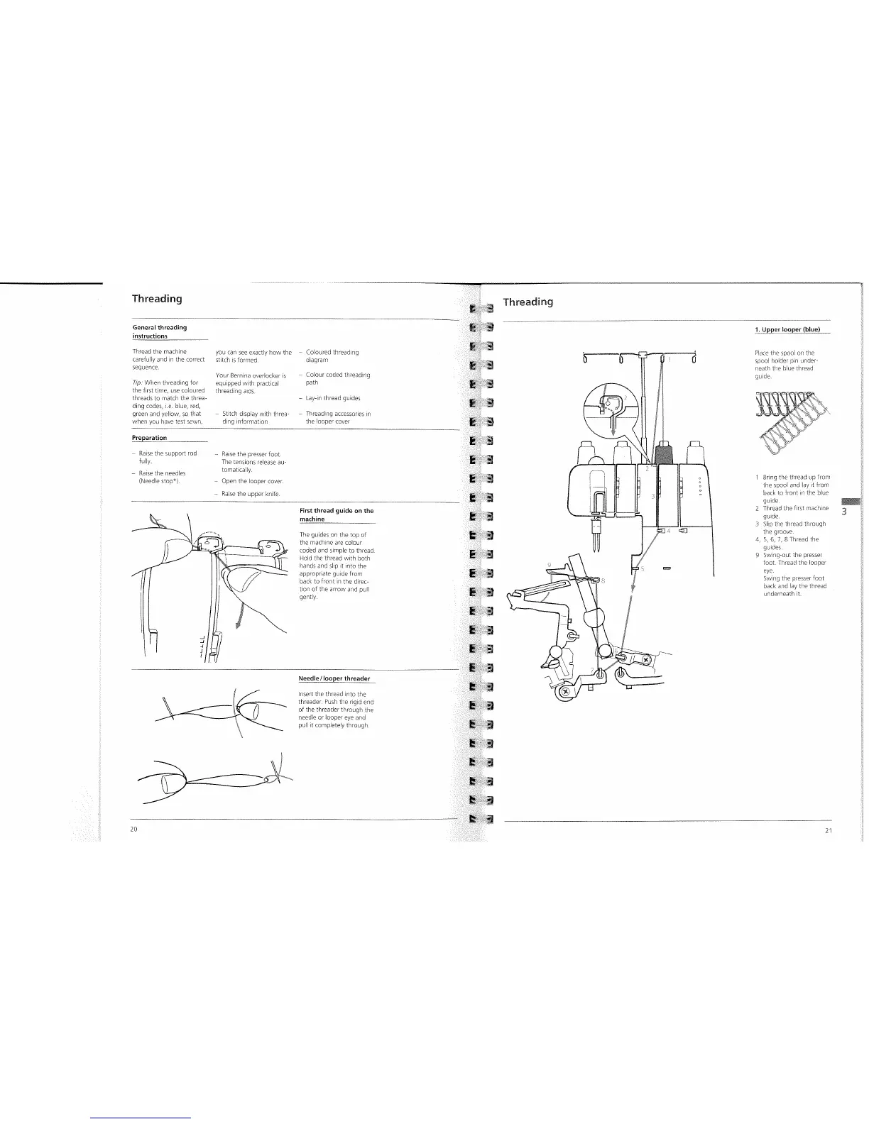 Bernina 2000 - Threading the Overlocker: Basics; General Threading Preparation; First Thread Guides on Machine; Needle and Looper Threader Tool