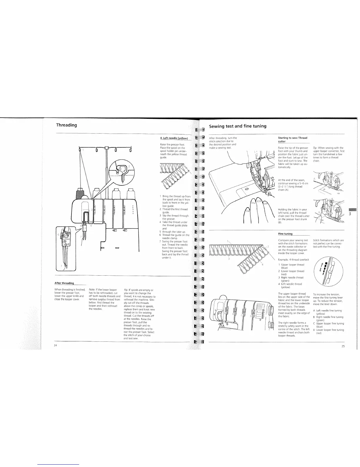 Bernina 2000 - Threading the Overlocker: Final Steps; Left Needle Threading (Yellow); Post-Threading Procedures; Sewing Test and Fine Tuning: Getting Started