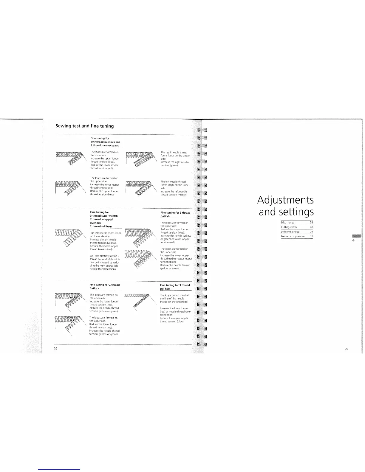Bernina 2000 - Sewing Test and Fine Tuning: Stitch Adjustments; Fine Tuning for Overlock and Narrow Seams; Fine Tuning for Stretch and Roll Hem Stitches; Fine Tuning for Flatlock and Roll Hem Stitches
