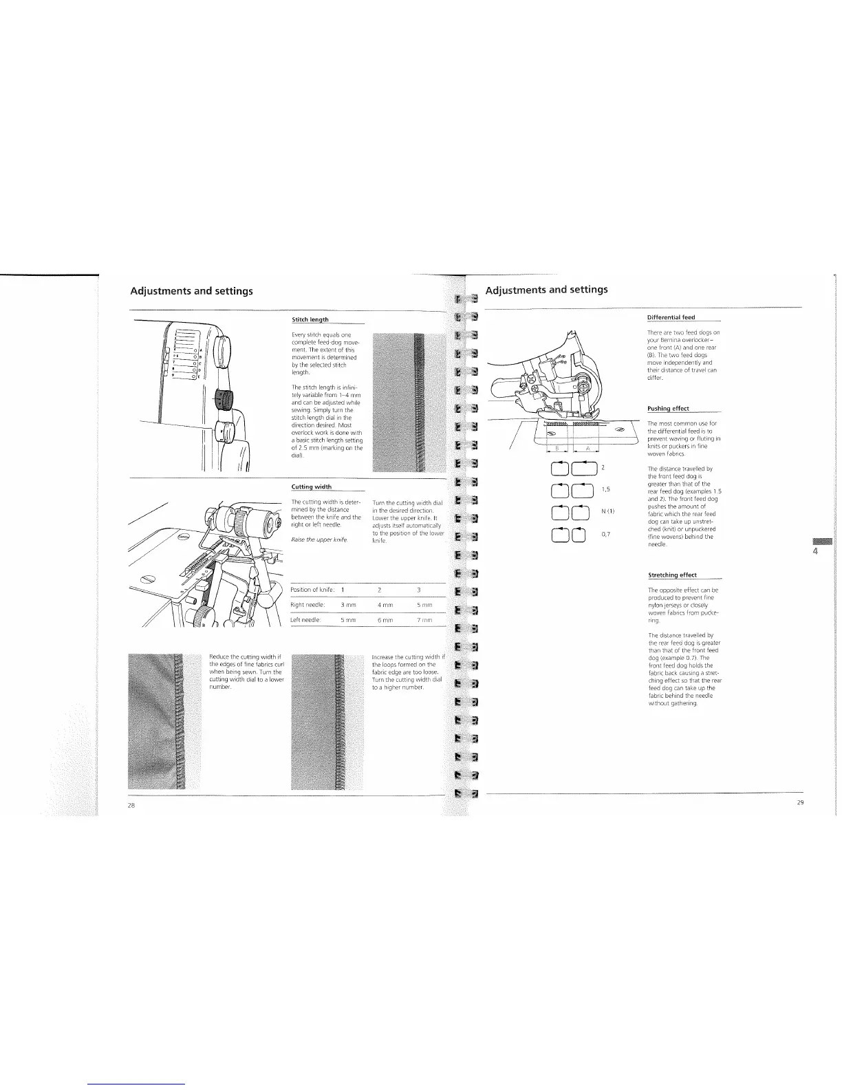 Bernina 2000 - Adjustments and Settings: Core Functions; Stitch Length Adjustment; Cutting Width Adjustment; Differential Feed Function