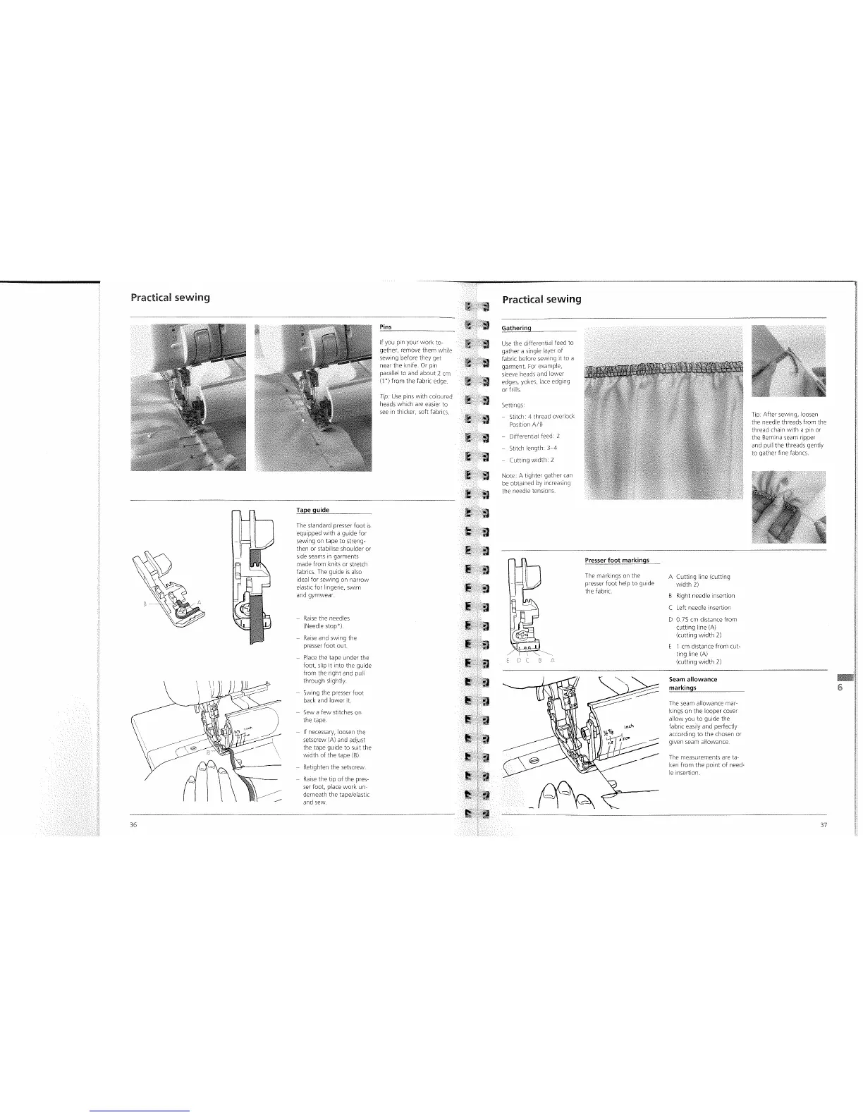 Bernina 2000 - Pins; Tape Guide; Gathering; Presser Foot Markings