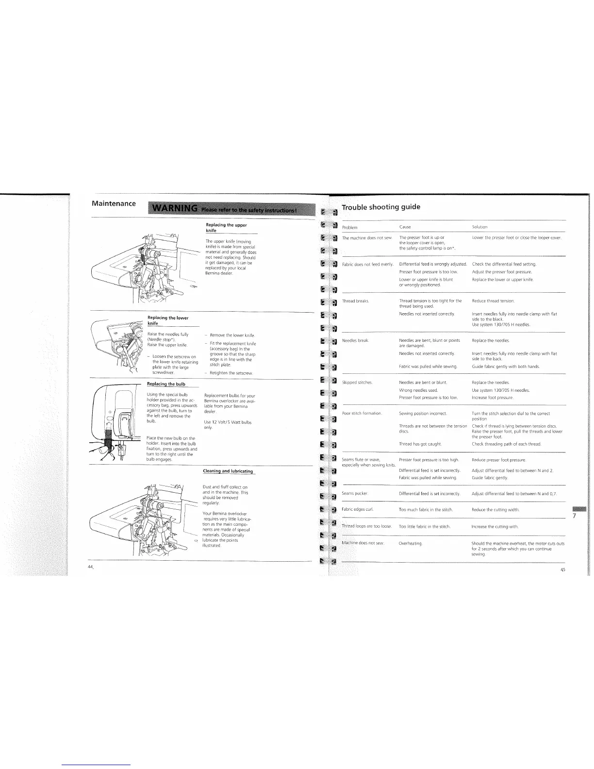 Bernina 2000 - Machine Maintenance: Detailed Procedures; Replacing Upper and Lower Knives; Replacing the Light Bulb; Cleaning and Oiling Procedures