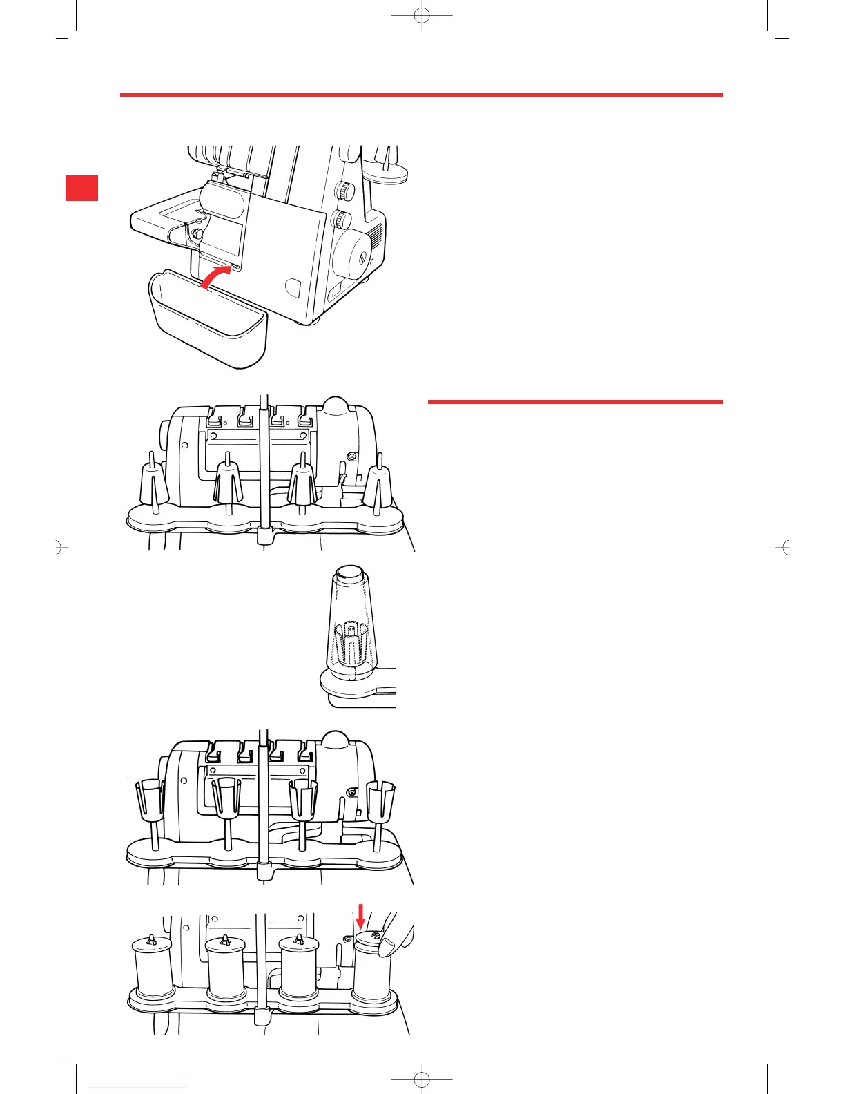 spools with the spool holder caps, rounded side downwards.