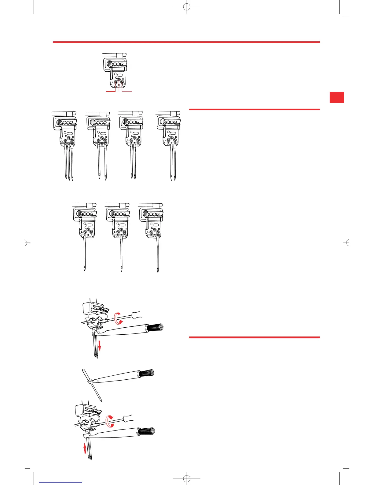 Needles are inserted into positions L, C or R depending on