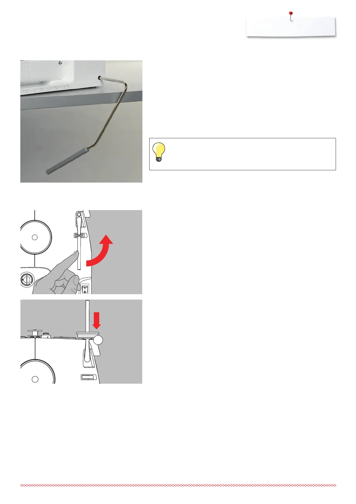 the presser foot is raised; the feed dog is lowered simultaneously. The