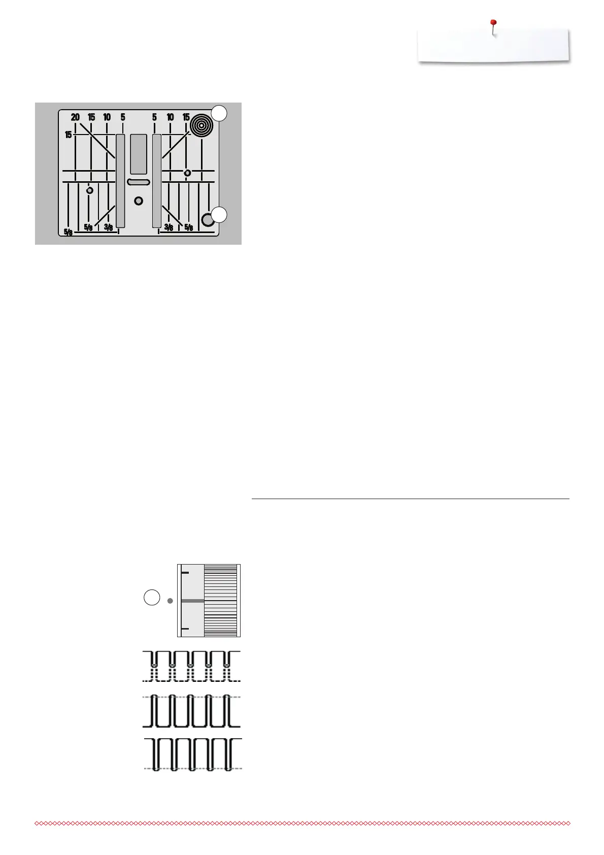 the stitch plate is marked with vertical, horizontal and diagonal lines in mm
