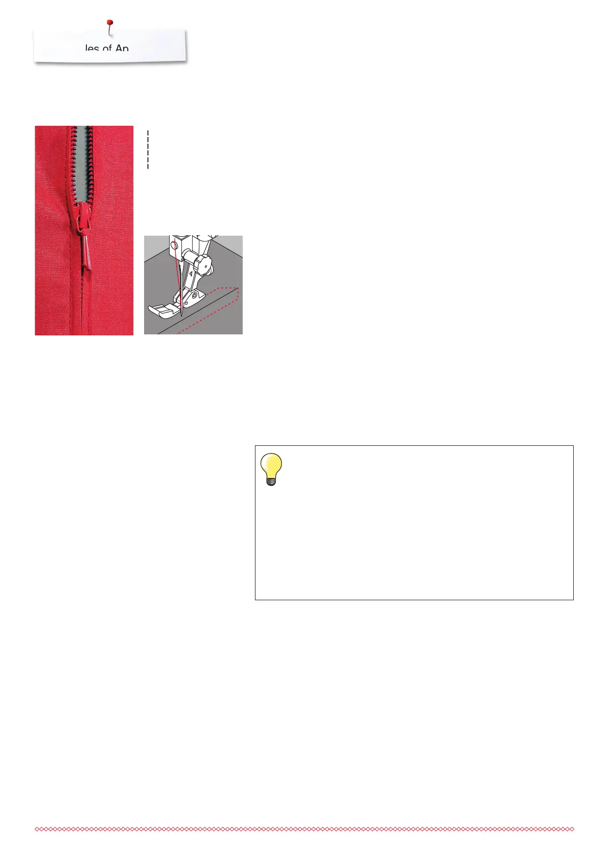 Hold thread firmly when starting to sew = pull fabric slightly to the