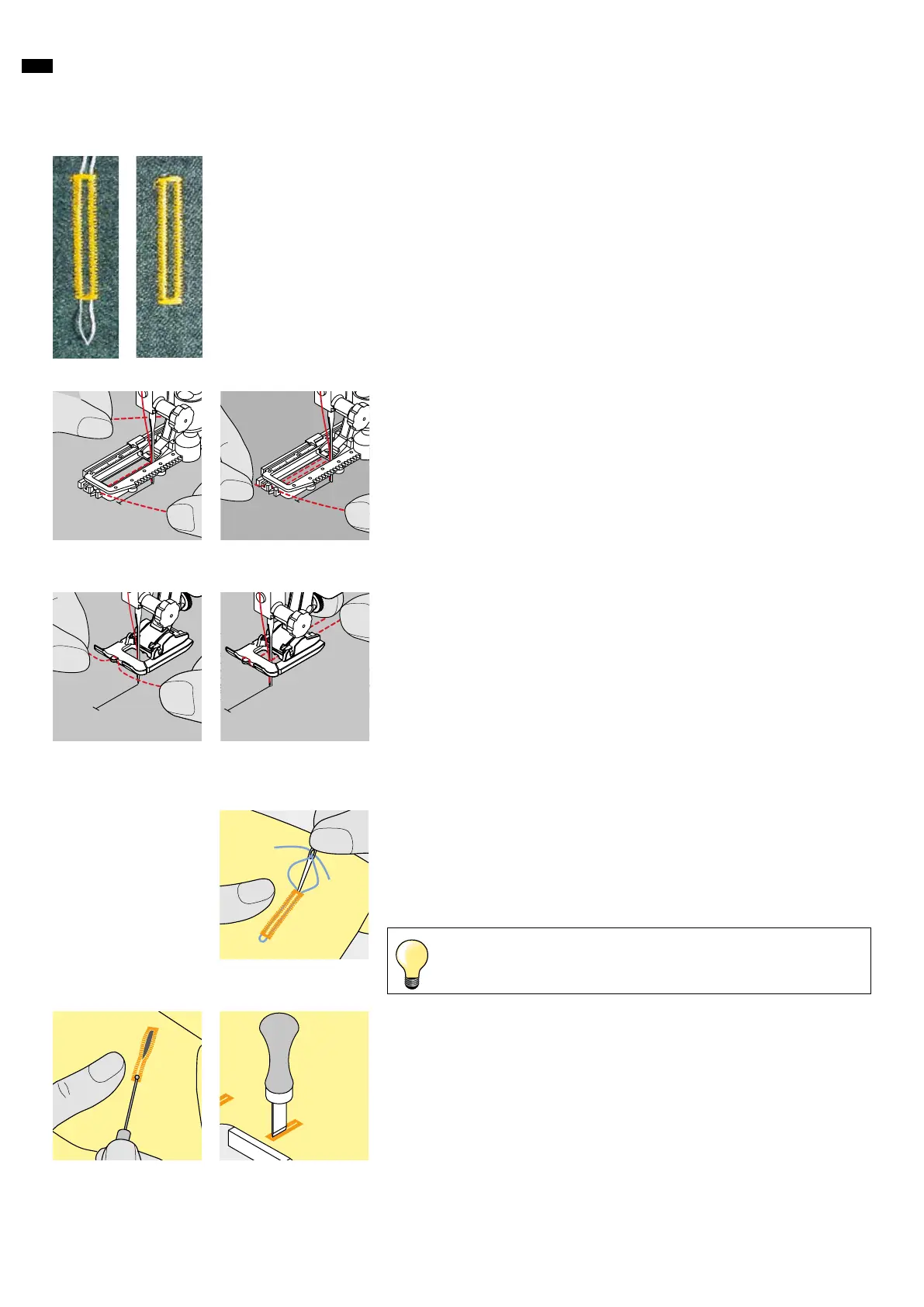 Hooking the cord onto presser foot no. 3 or buttonhole sole no. 3 */**/***