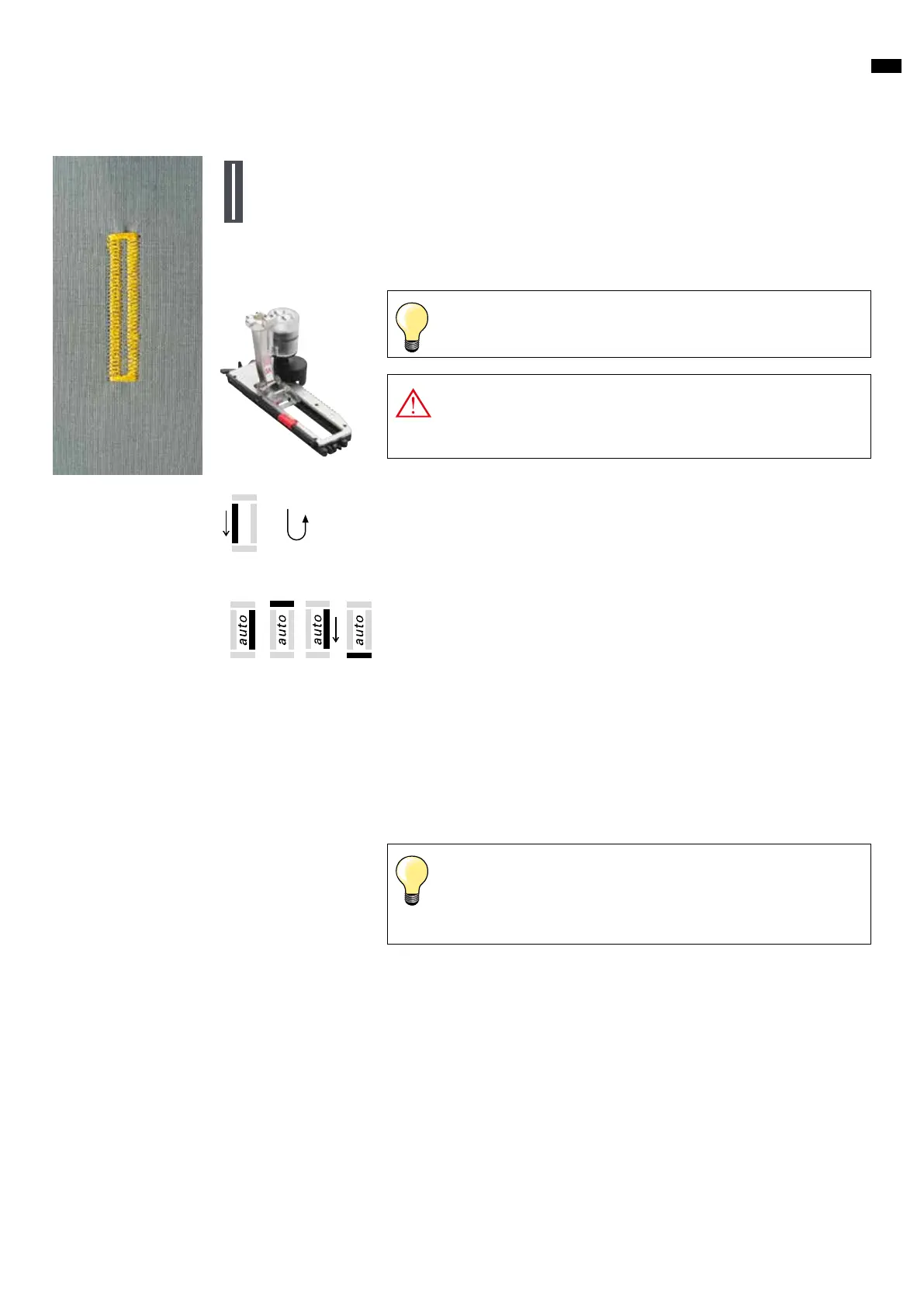 When any automatic buttonhole is selected, presser foot no. 3 is