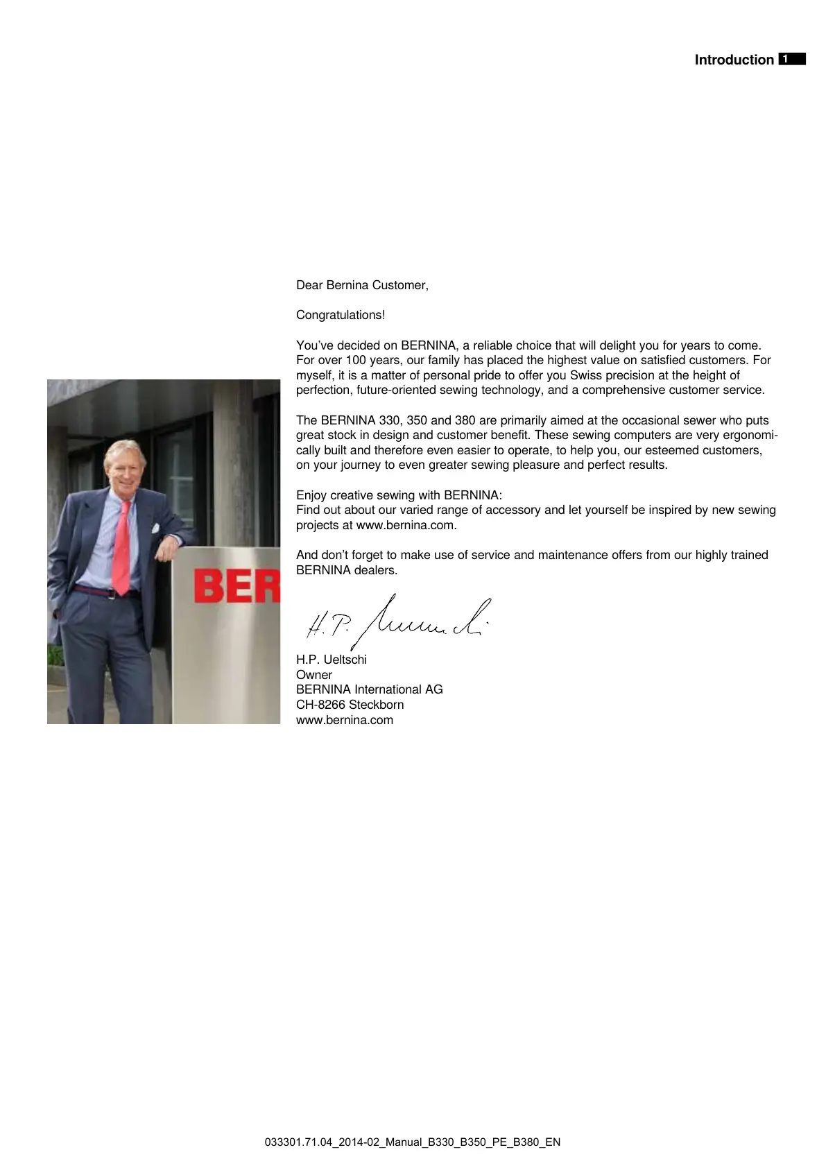 Dear Bernina Customer,