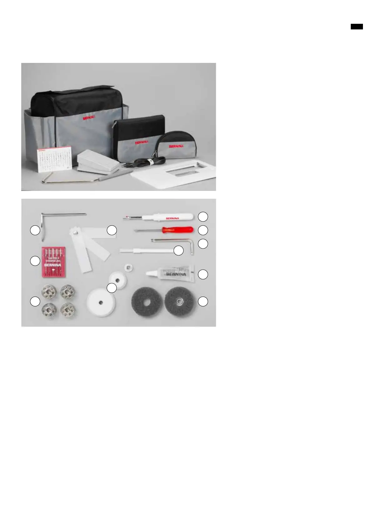 Bernina 380 - Standard Accessories Included; List of Included Accessories