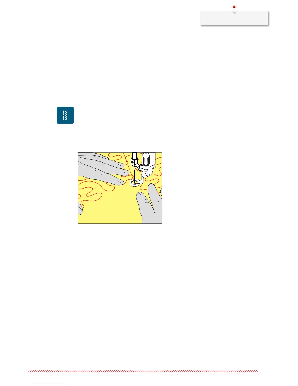 > Hold both hands close to the presser foot like an embroidery hoop to guide the fabric.