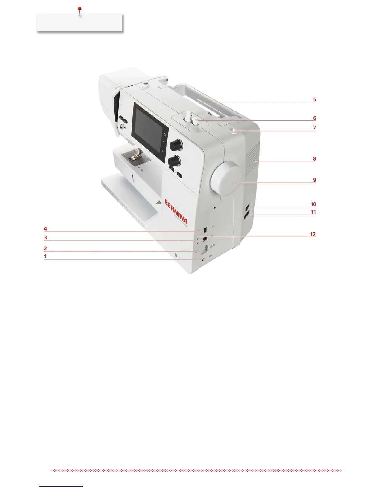 6 Bobbin winding unit 12 Magnet holder for touchscreen pen (optional