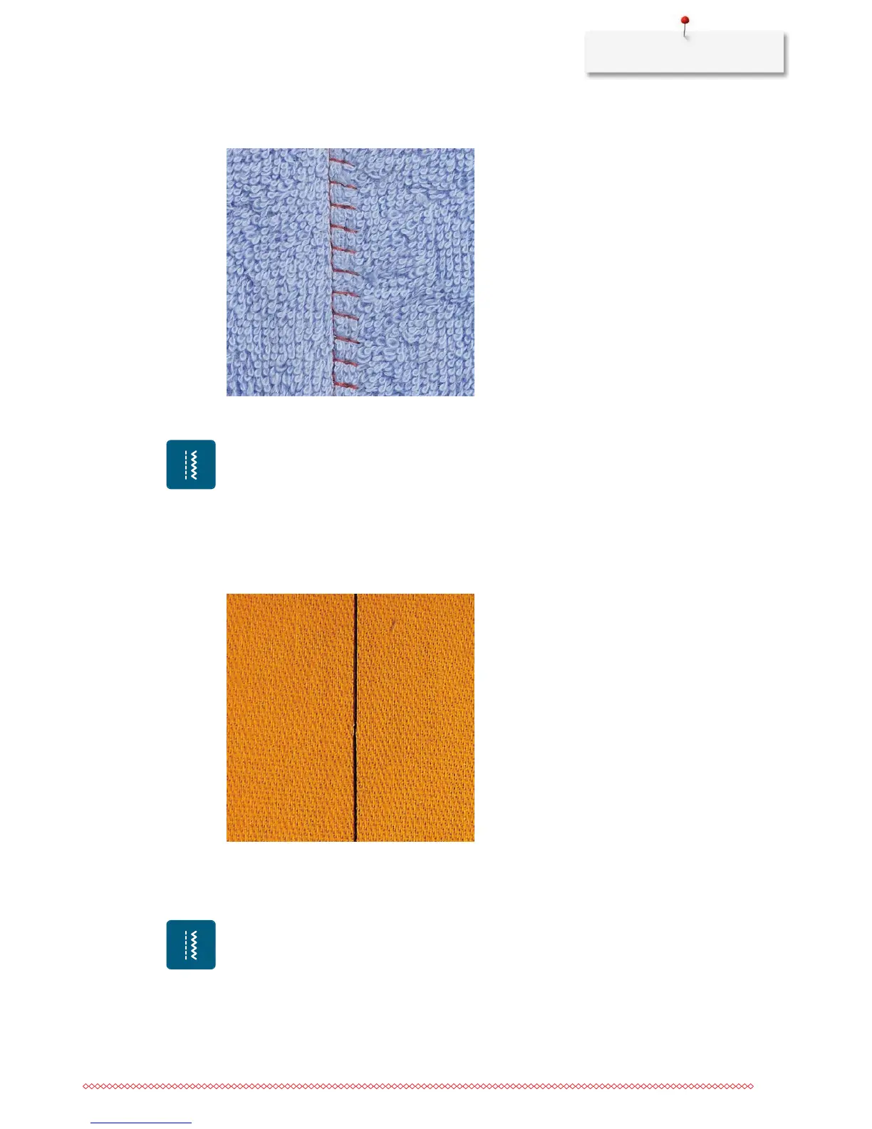 > The needle must stitch over the edge of the top layer on the right into the bottom layer to get a very flat