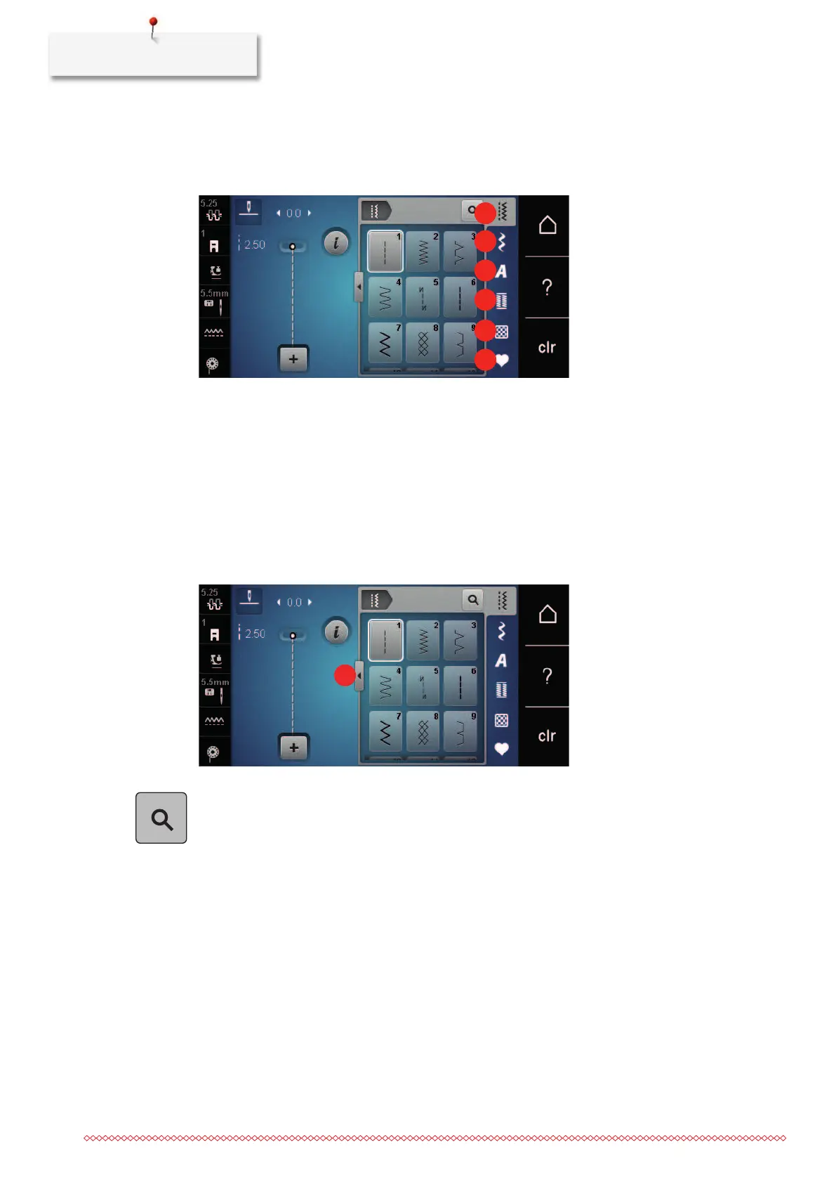 > To select the stitch pattern via the stitch number entry, tap «Stitch Pattern Selection via Number».