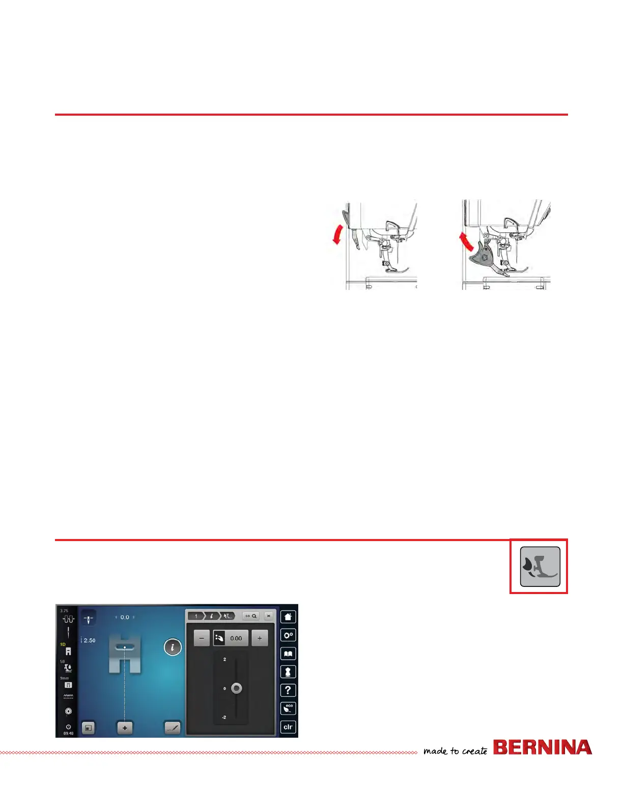 • Dual Feed feet require the Dual Feed to be engaged with the foot.