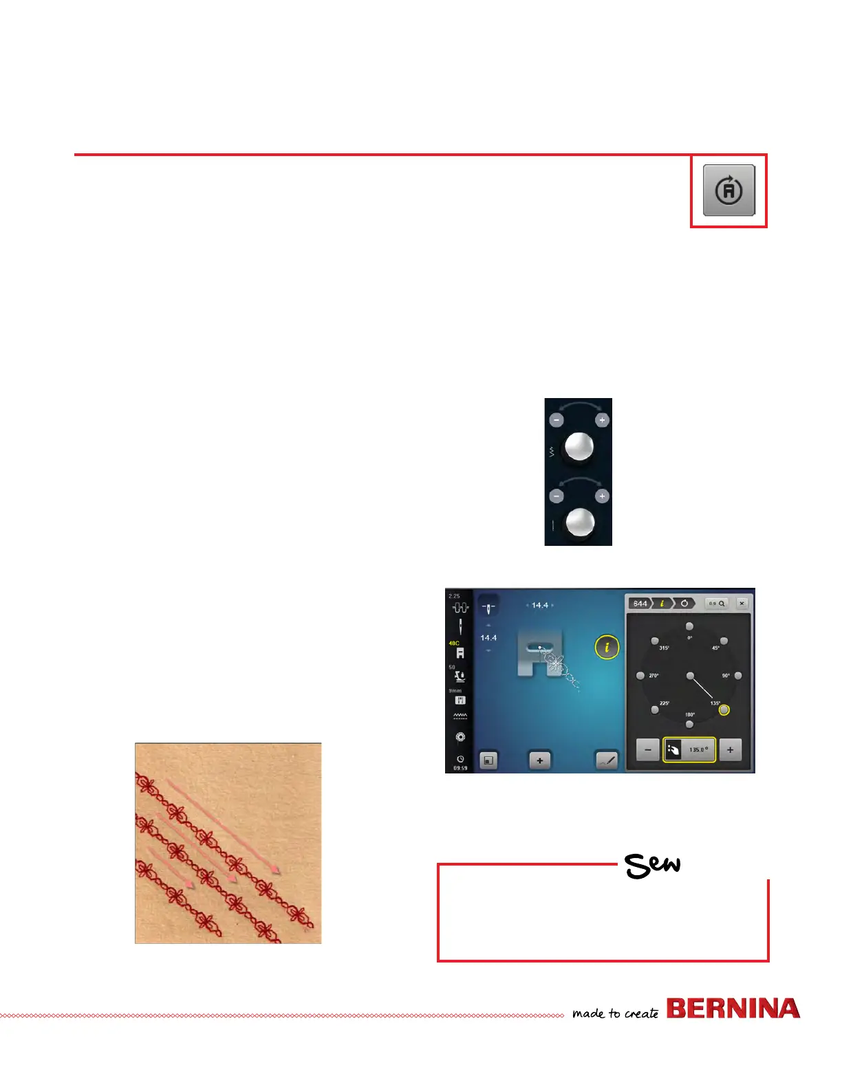 • Rotate in 0.5º increments by turning the stitch width knob.