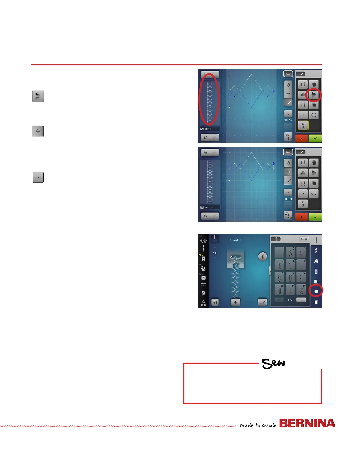 10. Touch the green check box to conrm the stitch