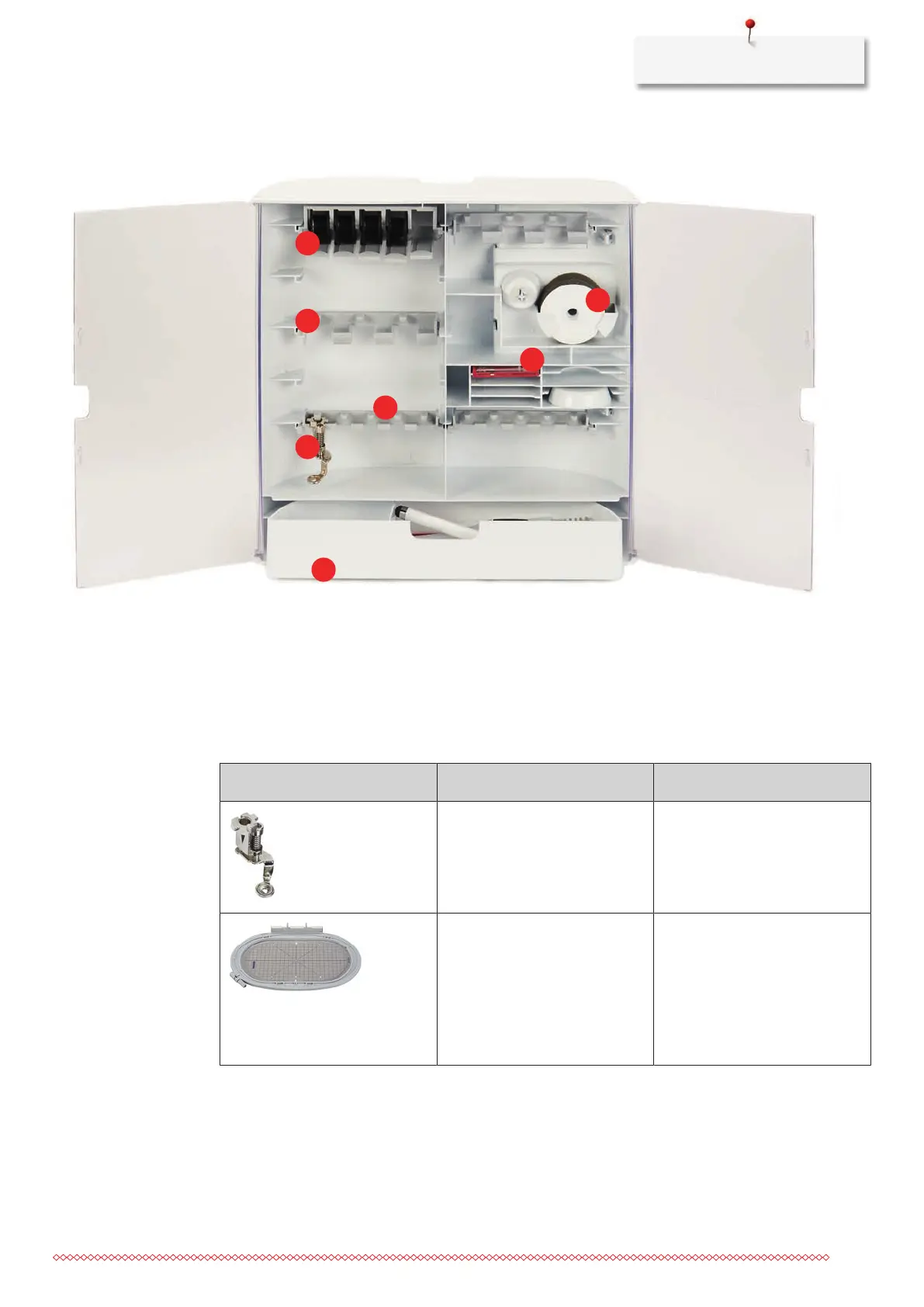 3 Holder for embroidery feet, 5,5 mm 7 Selection of needles