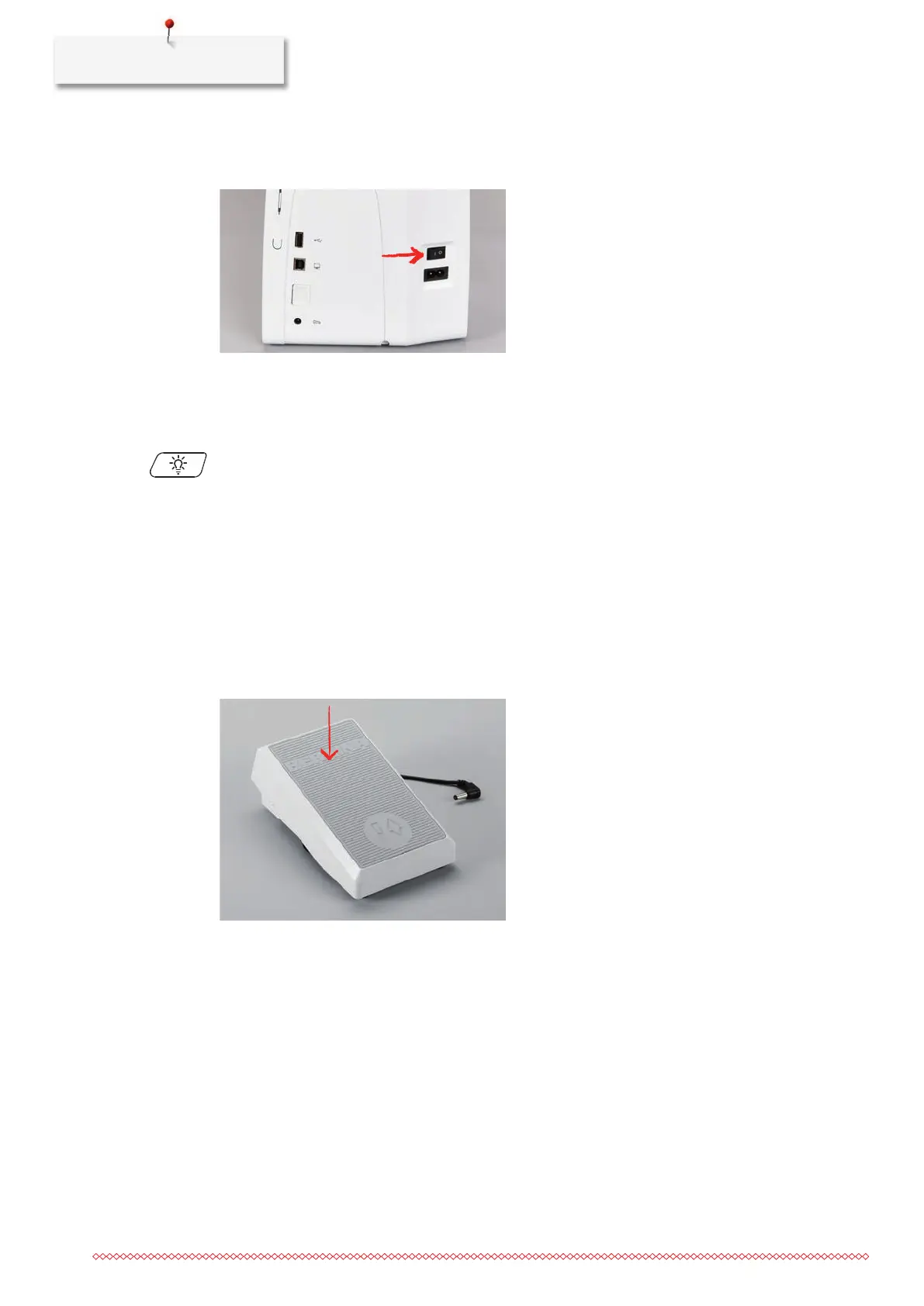 > Push the button «Sewing light» again to switch the sewing light on.