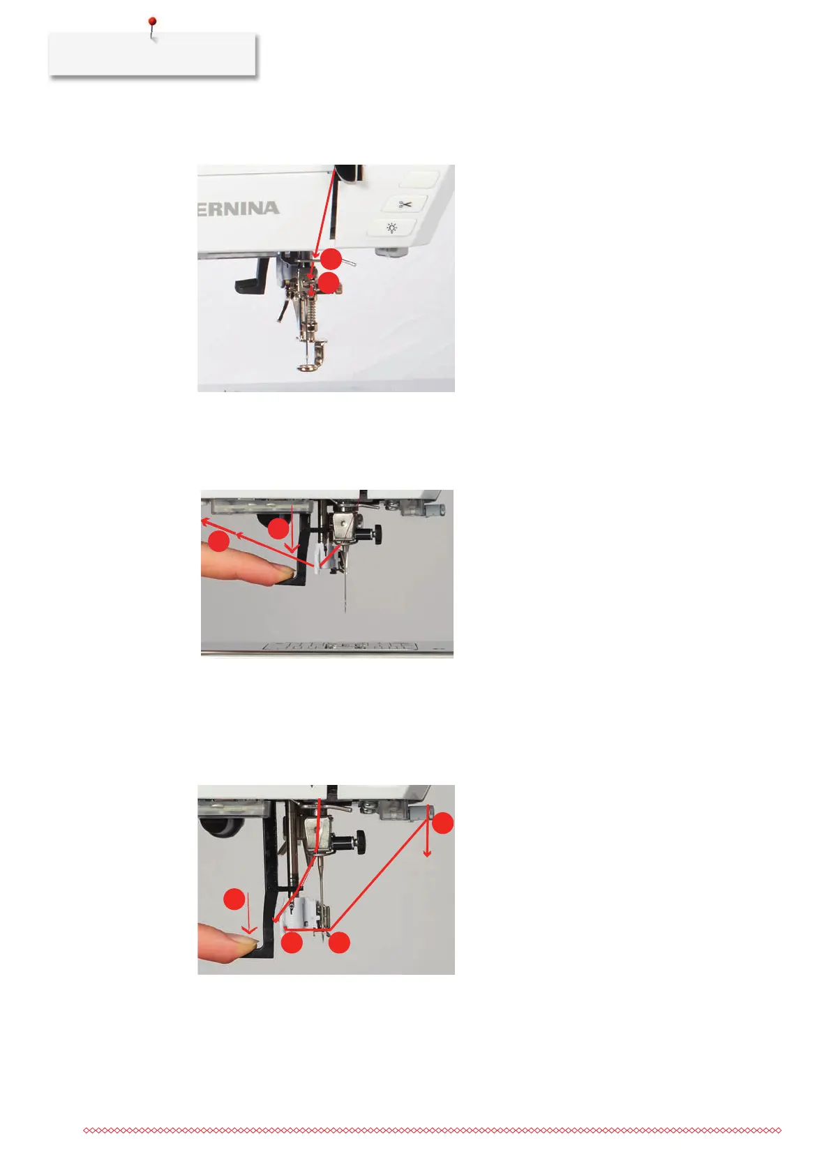 > Pull the thread from left to right (11) through the needle-threading slot (12) until it clips into the wire