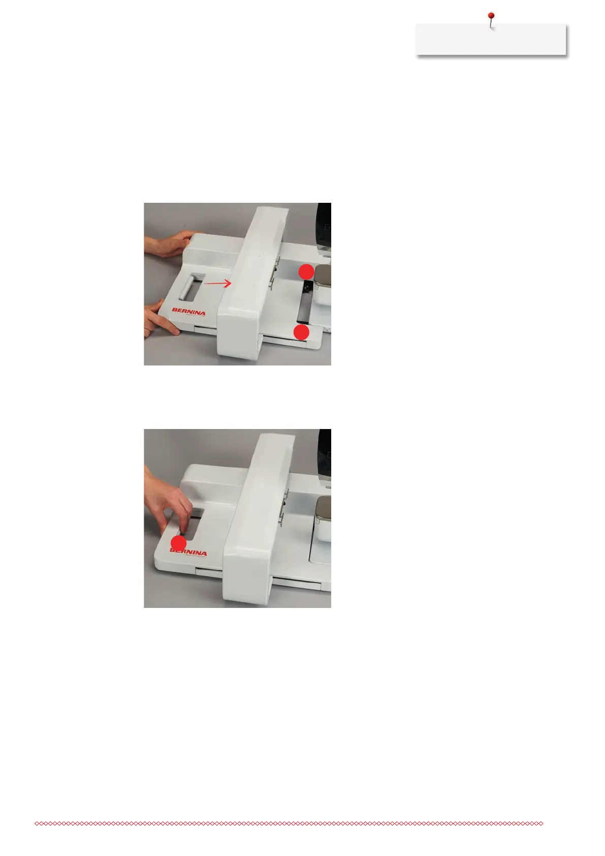 > Carefully slide the embroidery module from left to right into the machine's embroidery module