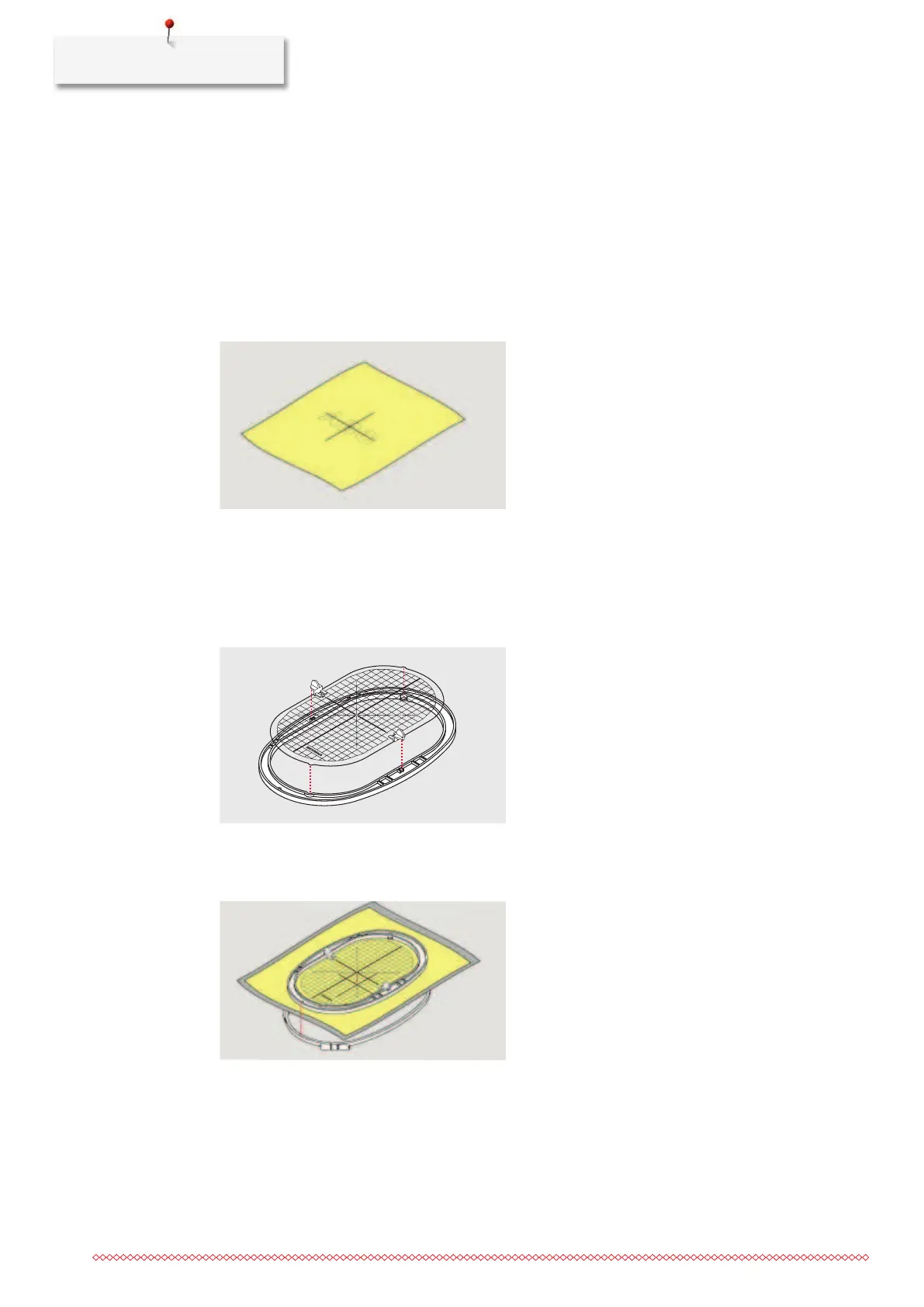 hoop. The area to be embroidered is marked in 1 cm (0.39inch) squares. The center and corner points are