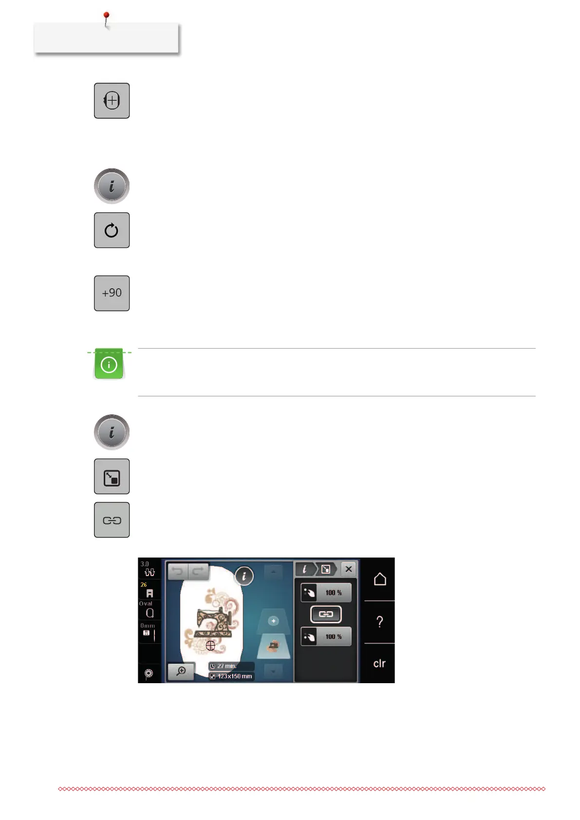 > Touch the icon «Rotate the motif +90°» to rotate the embroidery motif in 90°-steps.