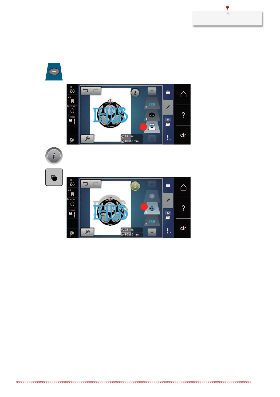 When a combination is duplicated, the individual embroidery motifs cannot be selected anymore.