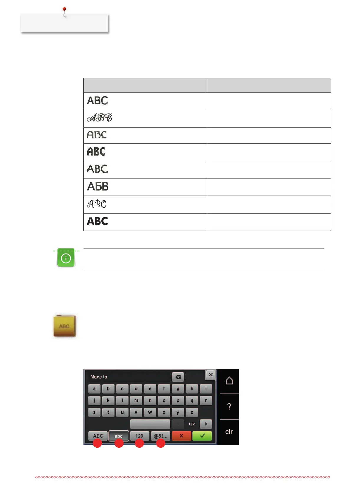 every letter or every word has to be selected individually and placed in the area to be embroidered.