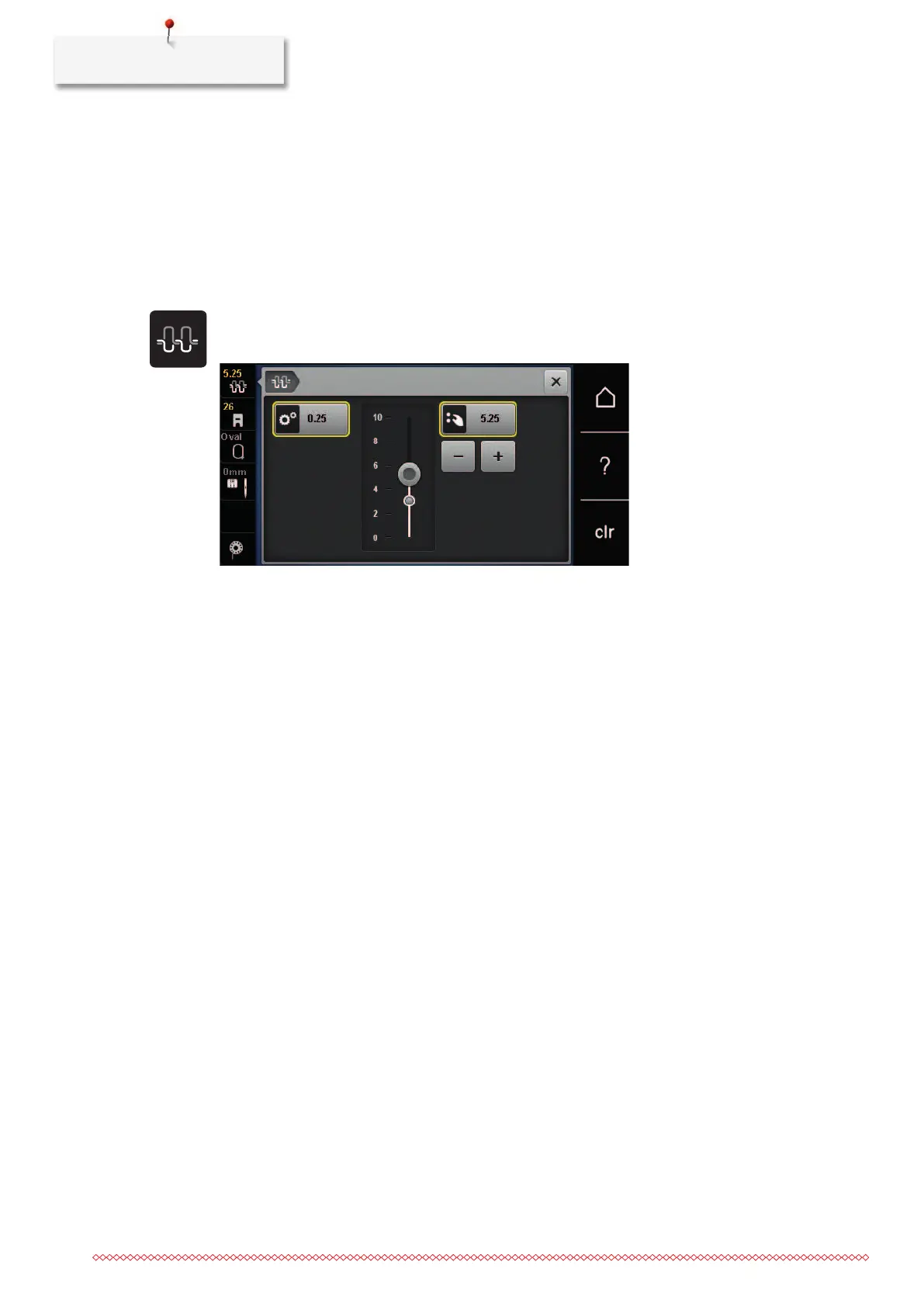 > Move the slide with the touchscreen pen or the finger to increase or reduce the upper thread tension.